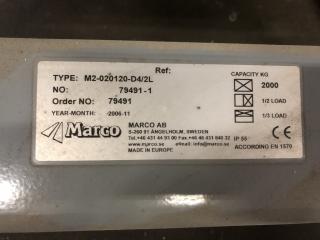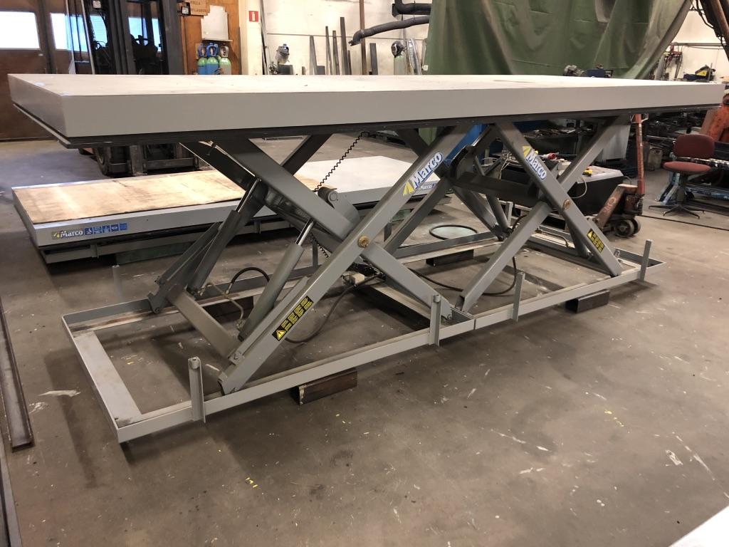 Ett fullt fungerande och fint lyftbord. Märke: Marco Modell: M2-020120-D4/2L Tillverkningsår: 2006 Mått: Längd 4000mm Bredd 1500mm Max lyfthöjd: 1350mm Max last: 2000kg