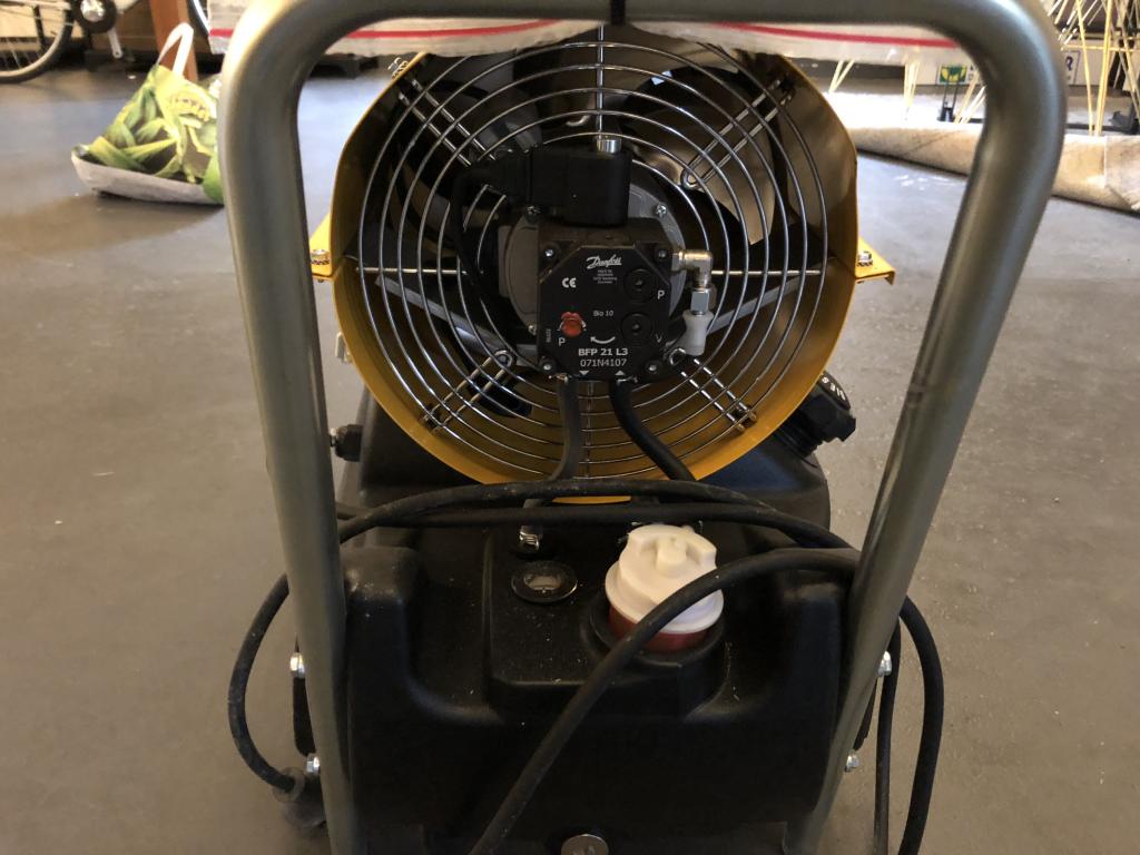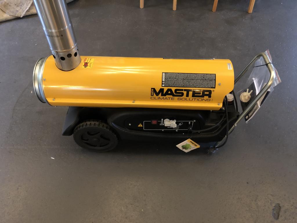 Dieselvärmare med rökrör, 220V. Hög effekt. Master BV 77 E 20 kW värmekanon Indirektverkande oljeeldad modell. Hög verkningsgrad. Avgaserna skilda från uppvärmningsluften. Förbränningskammare i rostfritt stål. Ytterhöljet värms inte upp. Högt luftflöde. Bränsleförbrukning [kg/t] 1,67 Effekt [kW] 20 Luftflöde [m3/h] 1.550 Skorstensdiameter [mm] 120 Spänning [V] 220 - 240 Strömstyrka [A] 1,67 Tankinnehåll [l] 36 Utblåsningsöppning [mm] 203 Värmeeffekt [kcal/t] 17.400