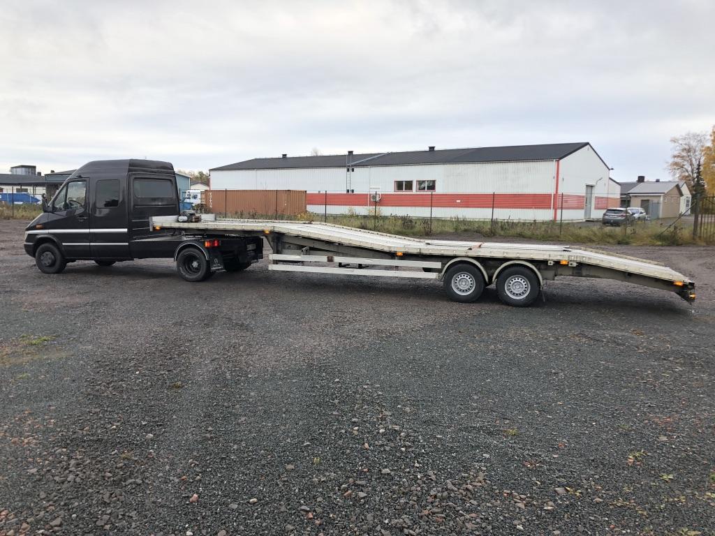 En Mercedes-Benz Sprinter 416 CDI Crew Cab Biltransport Plats för 2 Bilar B-körkortekipage År: 2001 Körsträcka: 386947 km Besiktad till: 2021-06-30 Bränsle: Diesel Växellåda: Manuell 5-växlad Vändskiva / 50 mm-kula Vinsch Bakre och främre vinschkontroll 2 st aluminiumramper Effekt (kW): 115 kW Hästkrafter: 156 hk Hästkrafter (Imperial): 154 bhp RPM vid max effekt: 3 800 rpm Vridmoment: 330 Nm Vridmoment (lb-ft): 243 lb-ft RPM vid max vridmoment: 1 400 - 2400 rpm Tankvolym: 76 L
