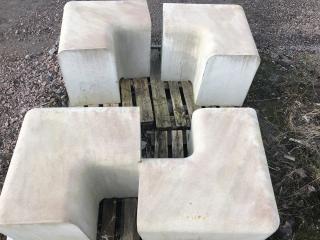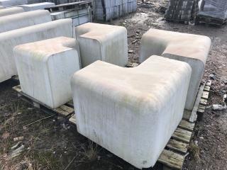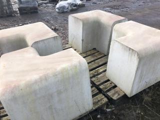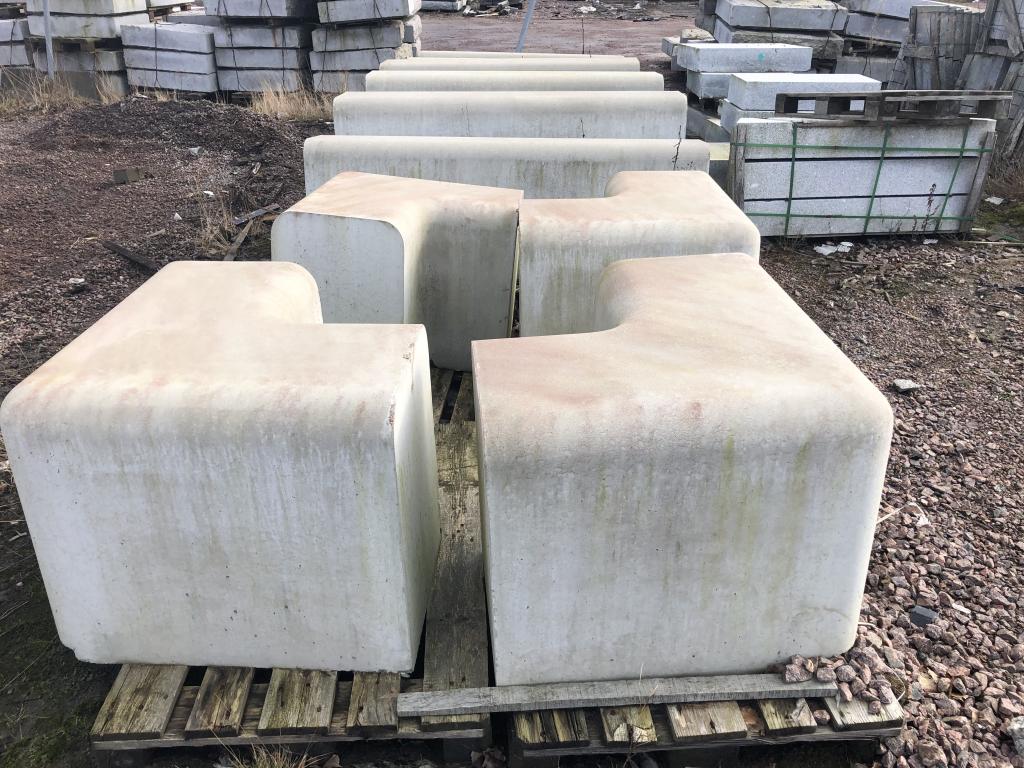 Murelement Outline Antal: 7st raka & 4st hörn. Mått raka: ca L1900mm B470mm H660mm Hörn ca: B470mm H660mm Övrigt, se bilder/film -Lasthjälp finns Text kopierat från nätet: Outline betyder kontur, namnet passar väl in på detta välavvägda och lätt svängda murelement som ofta ses använt på skolgårdar och i bostadsområden. Gör en parentes eller långa, böljande linjer med hjälp av de olika radieelementen. Outline monteras direkt på bärlager eller motsvarande och skall vara nersänkt 150 mm för att få rätt sitthöjd. Placera bänkarna med minst 10 mm toppavstånd eller ställ dem med viss distans för den visuella effekten. Ställs Outline tätt ihop är fogning med tätningslist att rekommendera för att undvika skador i de skarpa kanterna.