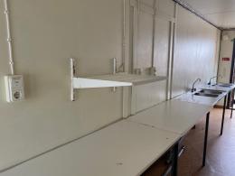 Inredd med diskbänkar med mera.