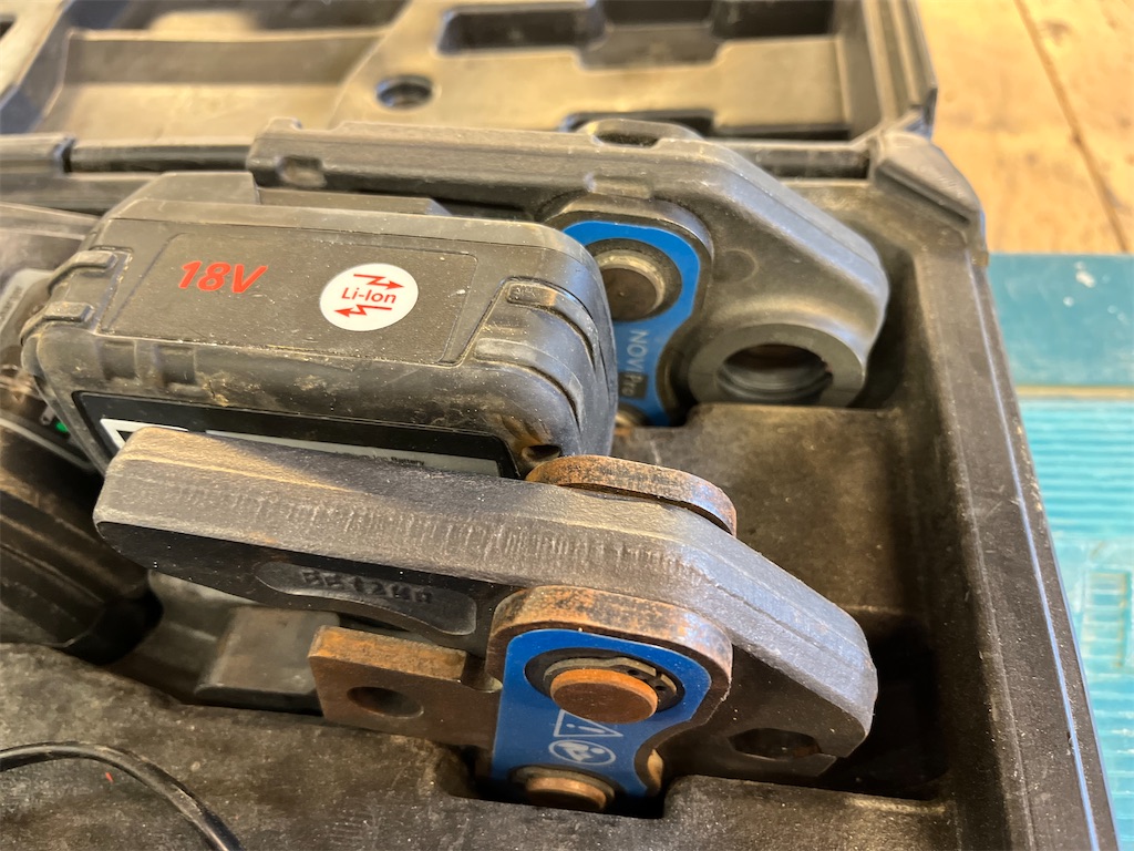 Stark och snabb. Pressning på cirka 5 sekunder. Levereras i stöttålig hårdplastväska, med 1 styck 18 V/3,0 Ah Li-Ion-batteri samt laddare. Elektrohydraulisk pressmaskin för pressning av rörkopplingar med diameter upp till 54 mm för metall och 110 mm för plast/multilayer, med ett presstryck på 32 kN. Konstant och jämn presskraft i över 20 000 presscykler. LED-lampan blinkar rött när batteriet är urladdat.