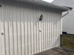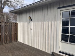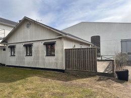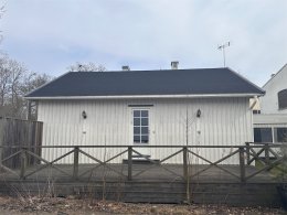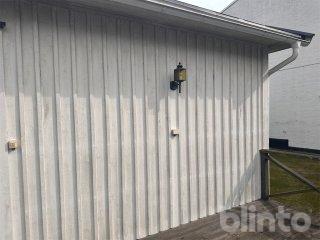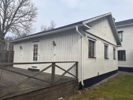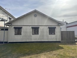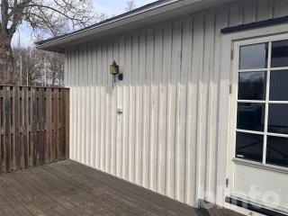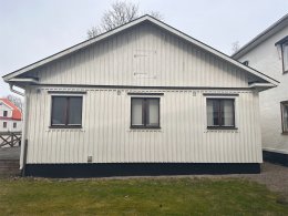 Fasaden är klädd med träpanel. Bra skick.