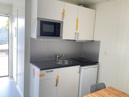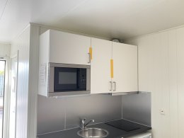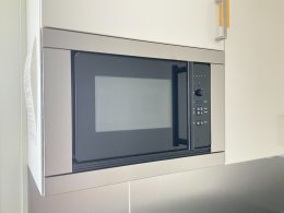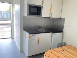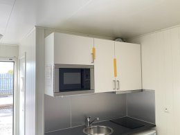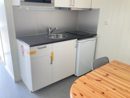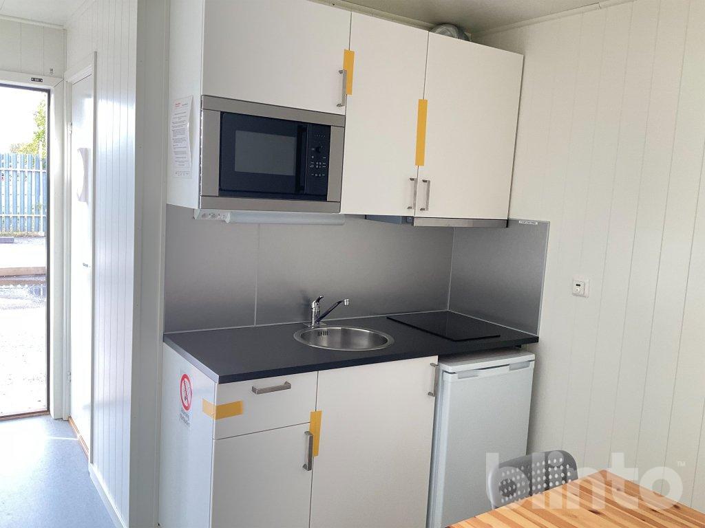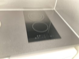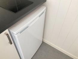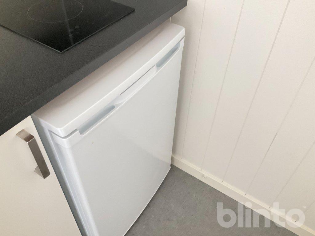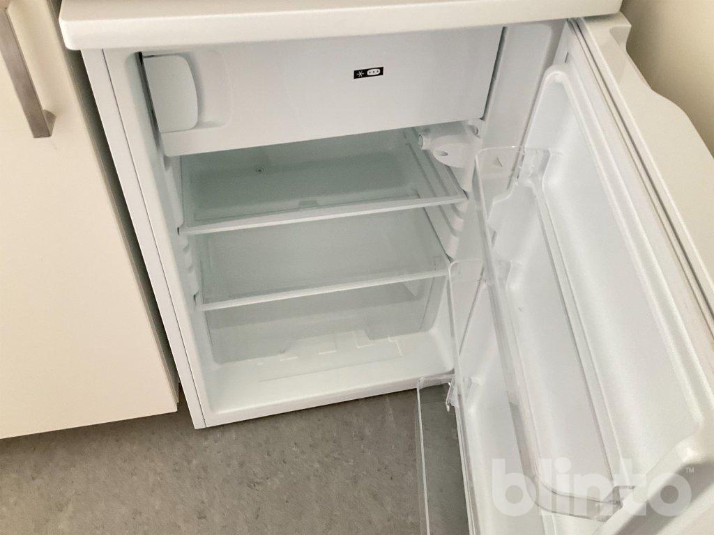 # Köksdel med spis och kylskåp