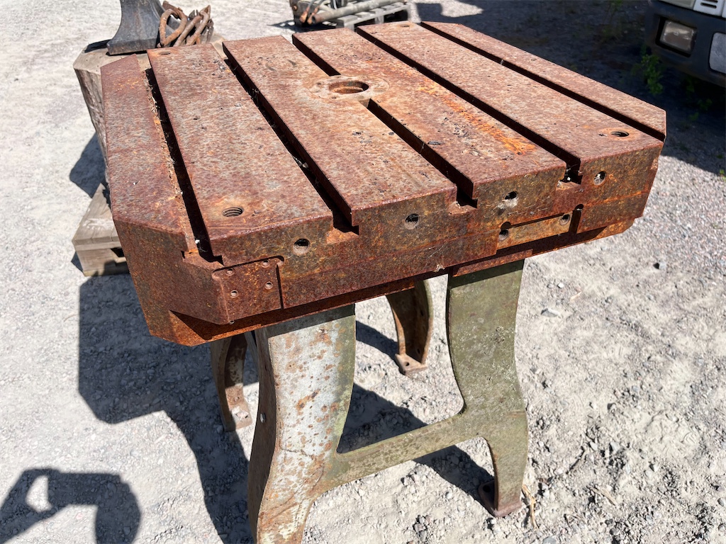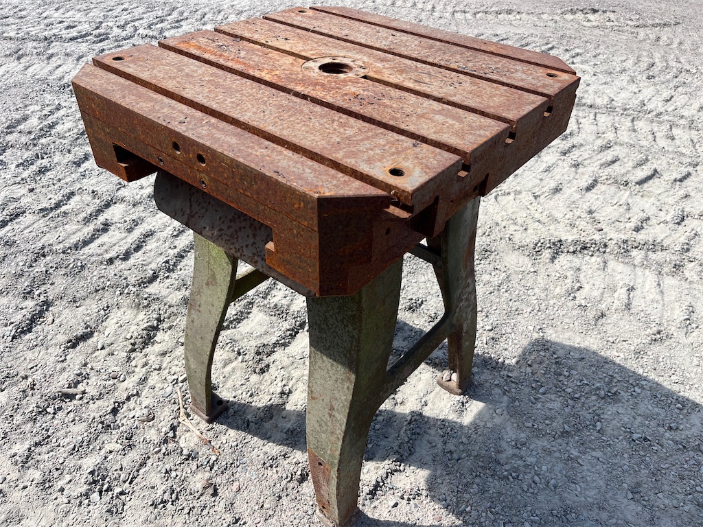 Byggt av palett till fräs med möjlighet för fastsättning av olika verktyg tack vare spåren i bordet. Kraftig gjutjärnspalett med kraftiga ben för stabilitet.
