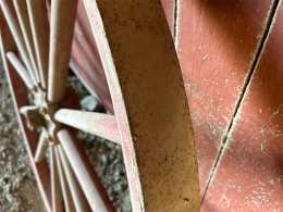 2 pieces of wheels in good condition to either replace on an existing wagon or why not let your imagination flow and create a pair of gates for the farm, a chandelier, decoration for the yard, the bar, or something else creative.