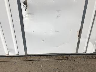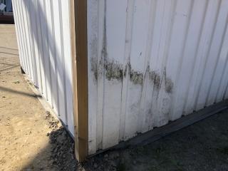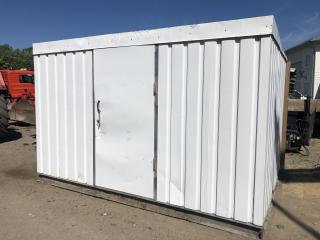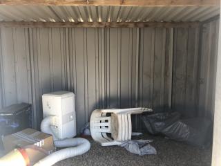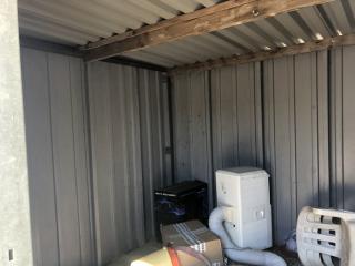 Plåtskjul BREDD: 3,50 meter DJUP: 2,60 meter HÖJD: 2,30 meter - Stålram - 1 nyckel - Säljs tom