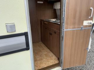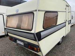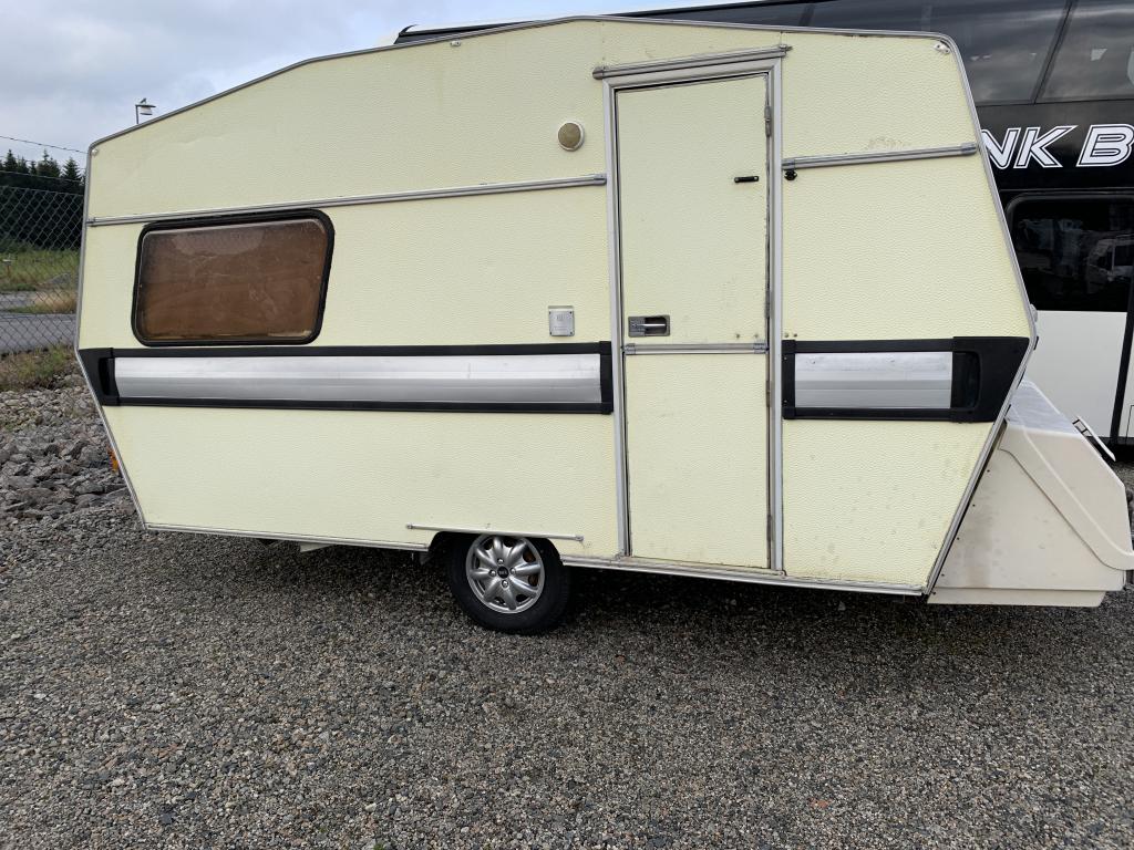 Äldre husvagn av märket Polar 420T. Liten mysig vagn för 2-3 personer med lågt reservationspris. Besiktigad t.o.m 2021-07-31. Bra däck, 70-80%. Kylskåp och spis ej testade. Se bilder och film för skick. Ej fukttestad. Vagnen säljs i befintligt skick. Medföljer förtält, dock osäker på skicket.