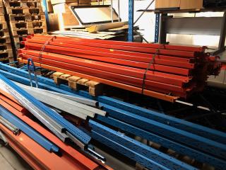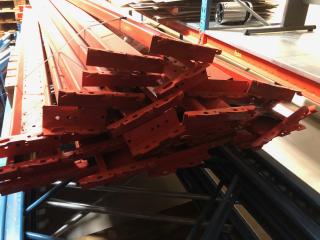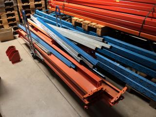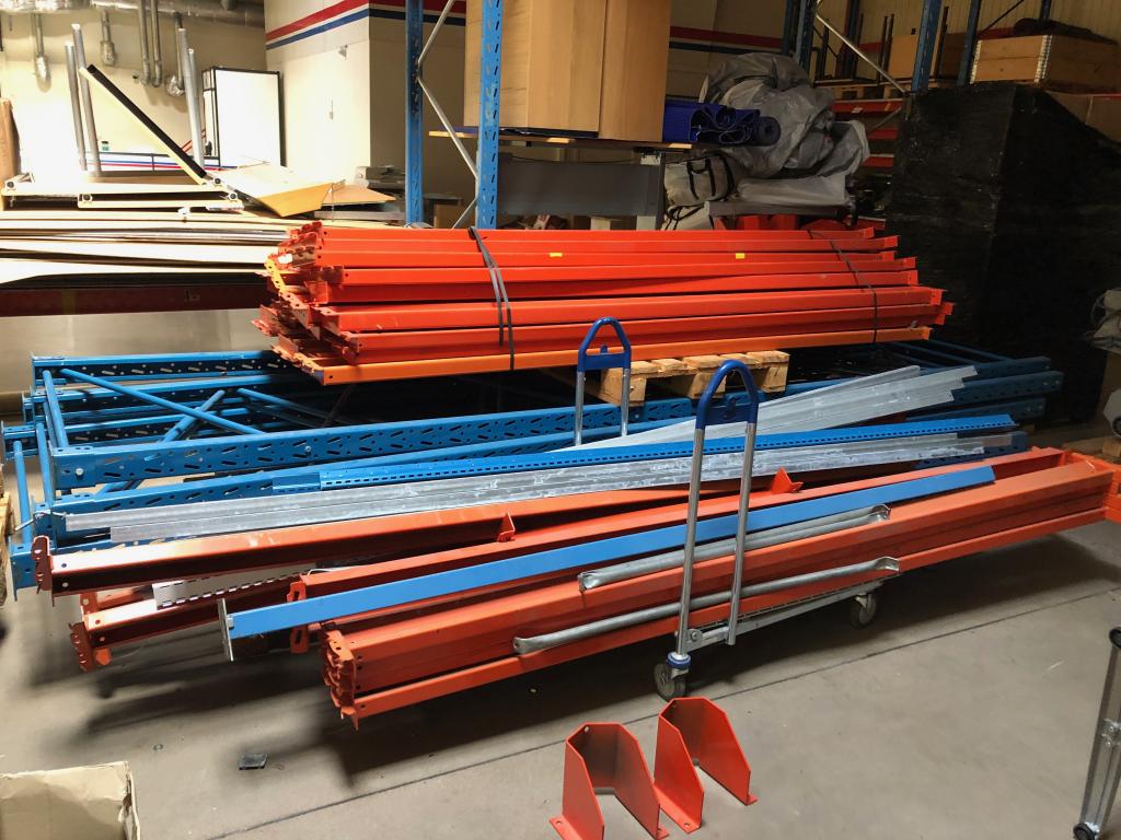 30 st. Balkar, längd: 2800 mm. 3 st. Gavlar, Höjd 4300 mm, Bredd 1100 mm. 2 st. Gavlar, Höjd 3400 mm, Bredd 1100 mm. 2 st. Påkörnings skydd. Div. stag och balkar medföljer, se bilder.