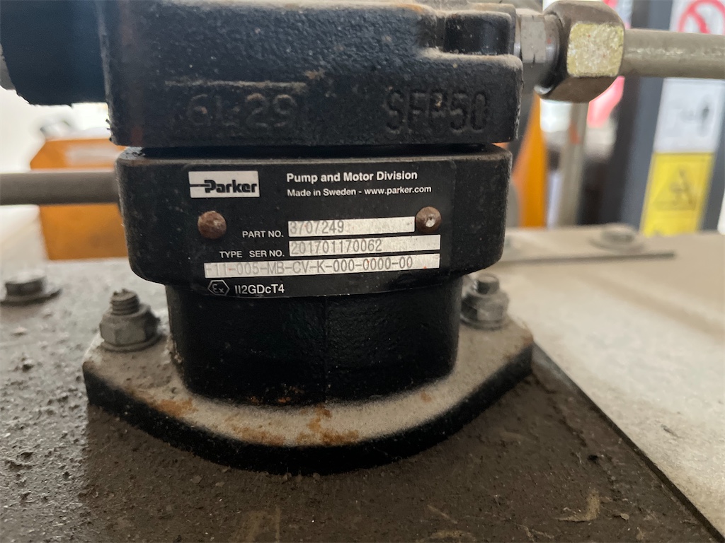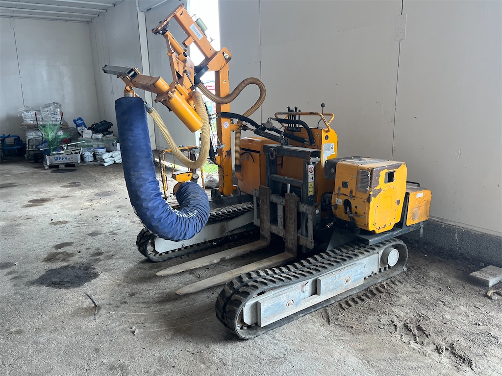 Modellen är utrustad med ett fullt automatiskt bomutjämningssystem, knuckle-boom med “SAFESTOP” (bom som inte svänger ut i trafikområde), gummibandgående larvfötter för bra framkomlighet på ojämnt underlag, justerbar mast, samt hydrauliskt fällbar bom för transport
