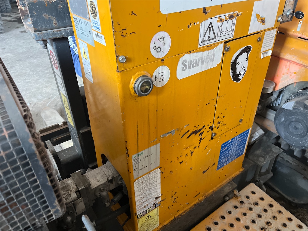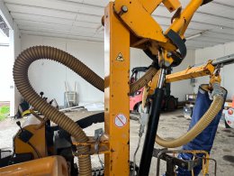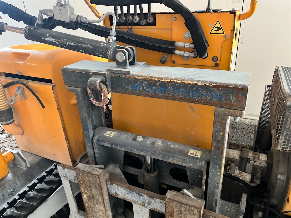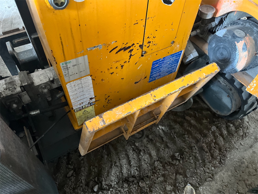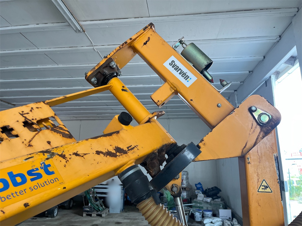 The model is equipped with a fully automatic boom leveling system, a knuckle-boom with “SAFESTOP” (boom does not swing out into the traffic area), rubber-tracked undercarriage for good mobility on uneven terrain, adjustable mast, and hydraulically foldable boom for transport.
