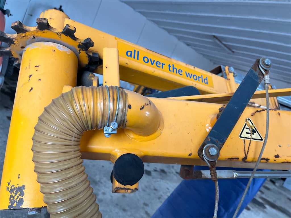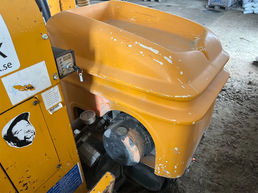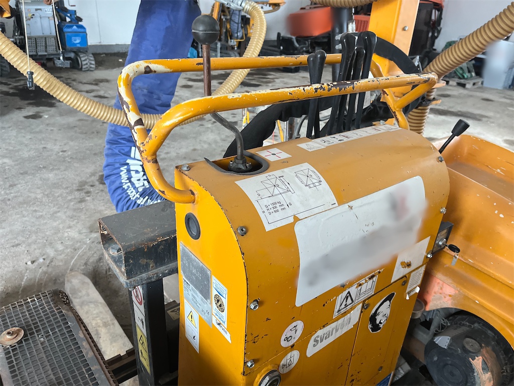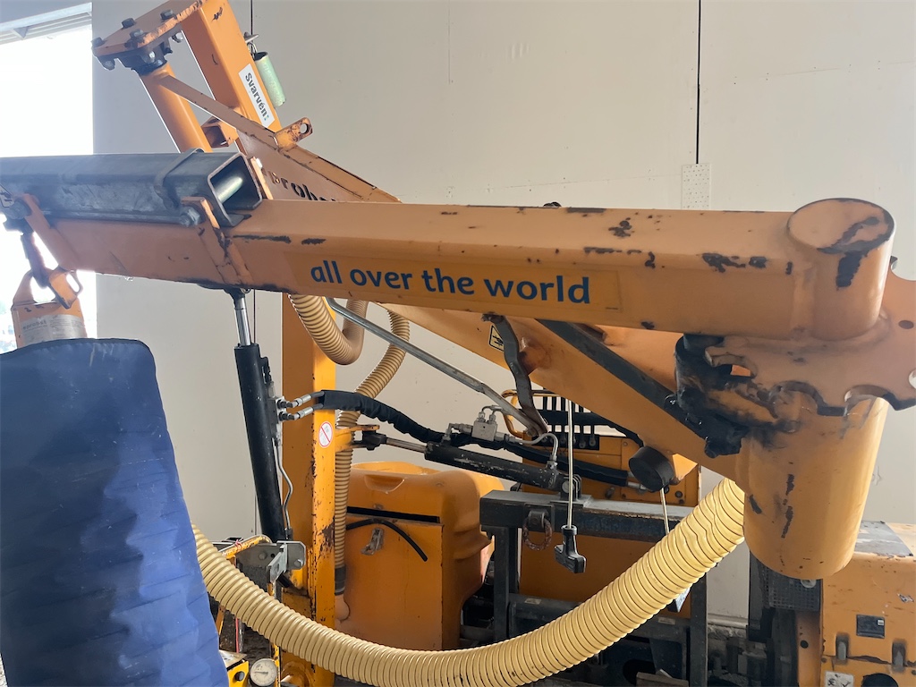 The model is equipped with a fully automatic boom leveling system, a knuckle-boom with “SAFESTOP” (boom does not swing out into the traffic area), rubber-tracked undercarriage for good mobility on uneven terrain, adjustable mast, and hydraulically foldable boom for transport.
