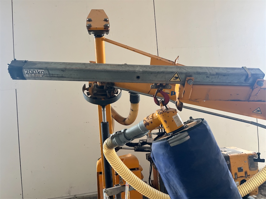 Robust vakuumlyftaggregat HE-150 (150 kg), säkerhetsvalv BE-Sprint-2, vagnsjusterbar bom, timräknare, tändningslås, och snabbkoppling för borttagning av vakuumenhet vid behov