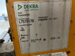 Robust vacuum lifting unit HE-150 (150 kg), safety valve BE-Sprint-2, carriage-adjustable boom, hour meter, ignition lock, and quick coupling for removal of the vacuum unit when needed.