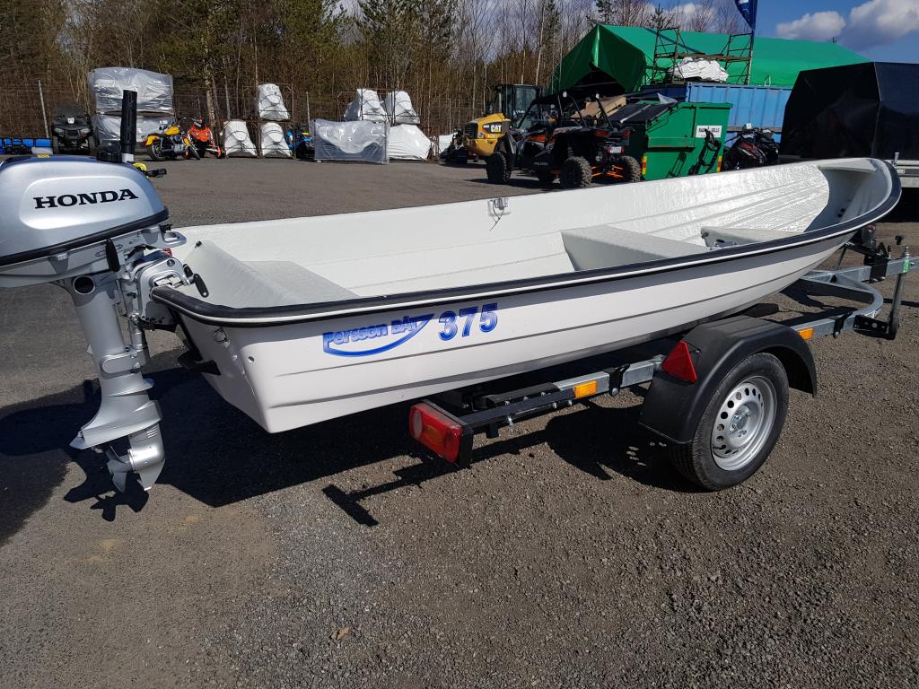 Ekipage för fiskeentusiasten Persson 375 godkänd för 3 personer Honda h 5 hk motor Lorries trailer reg YJB20N Färdig för säsongen