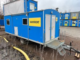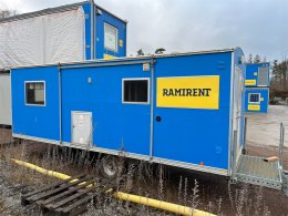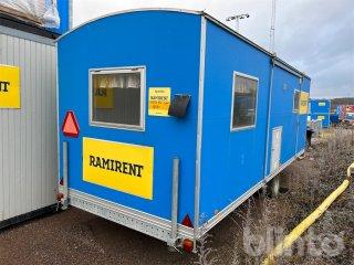 Ett flexibelt alternativ för personalutrymme. Innehåller matplats, omklädningsplats och WC för upp till fem personer. Drivs med el och har solceller.