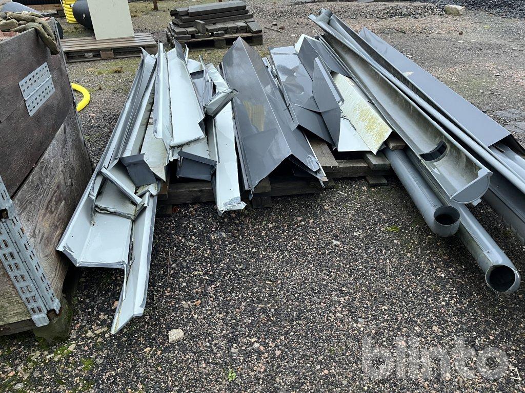 Hängrännor, stuprör, nockplåtar mm.