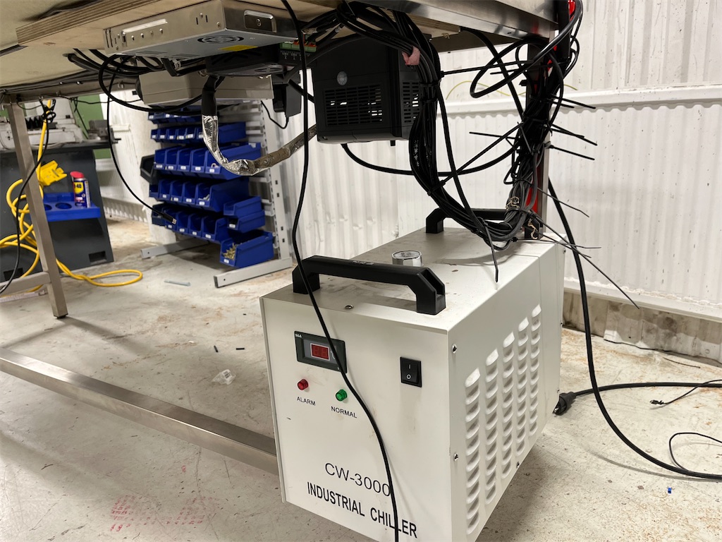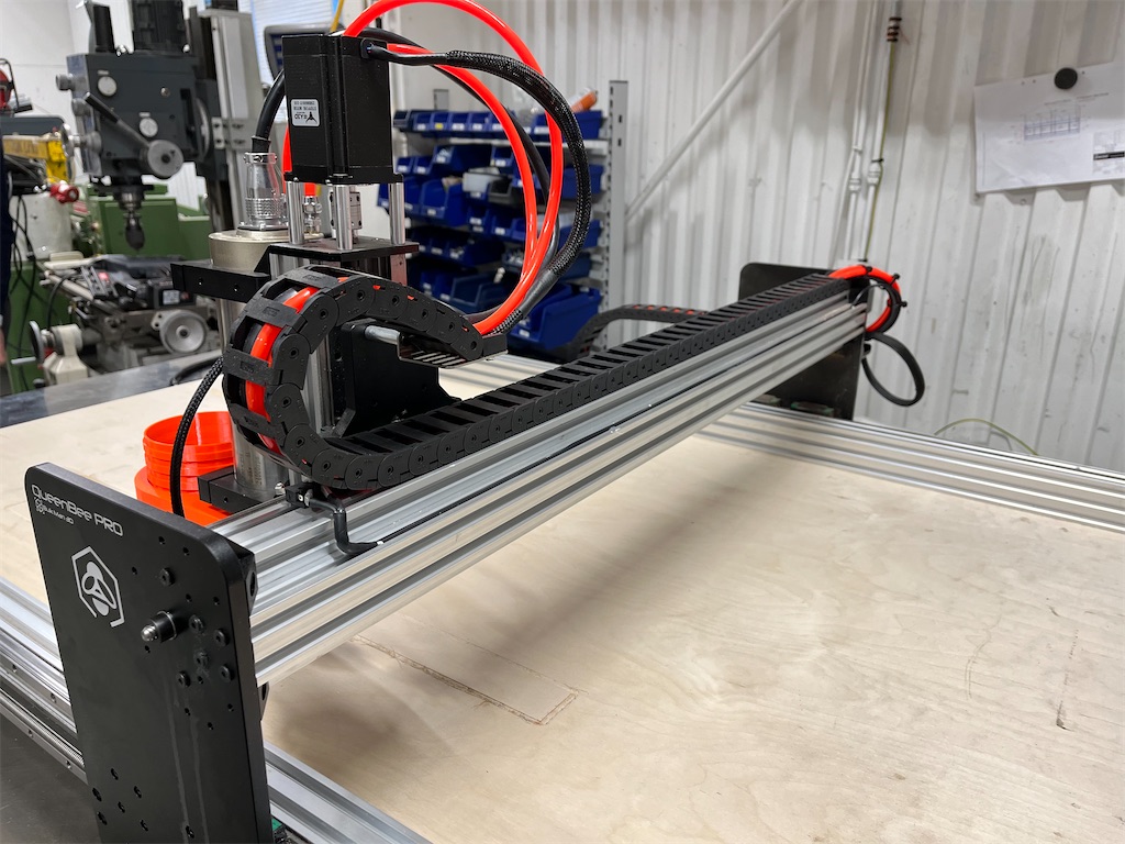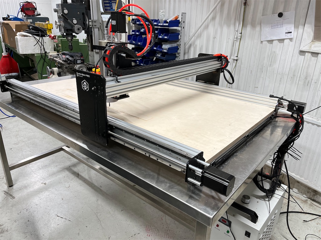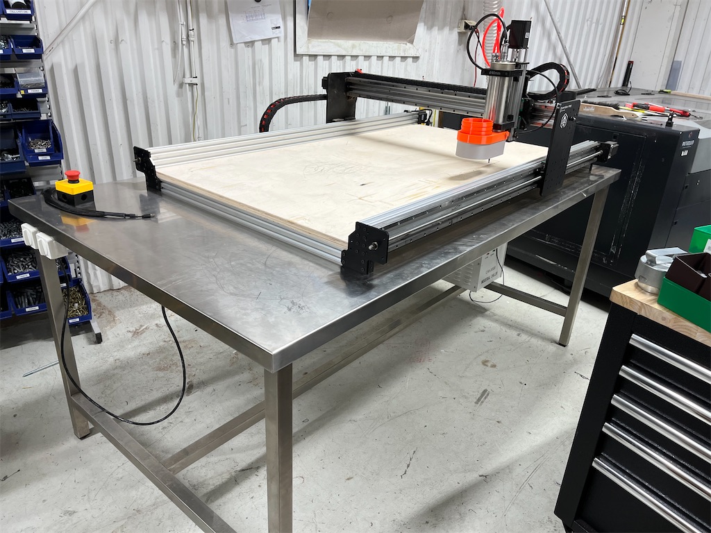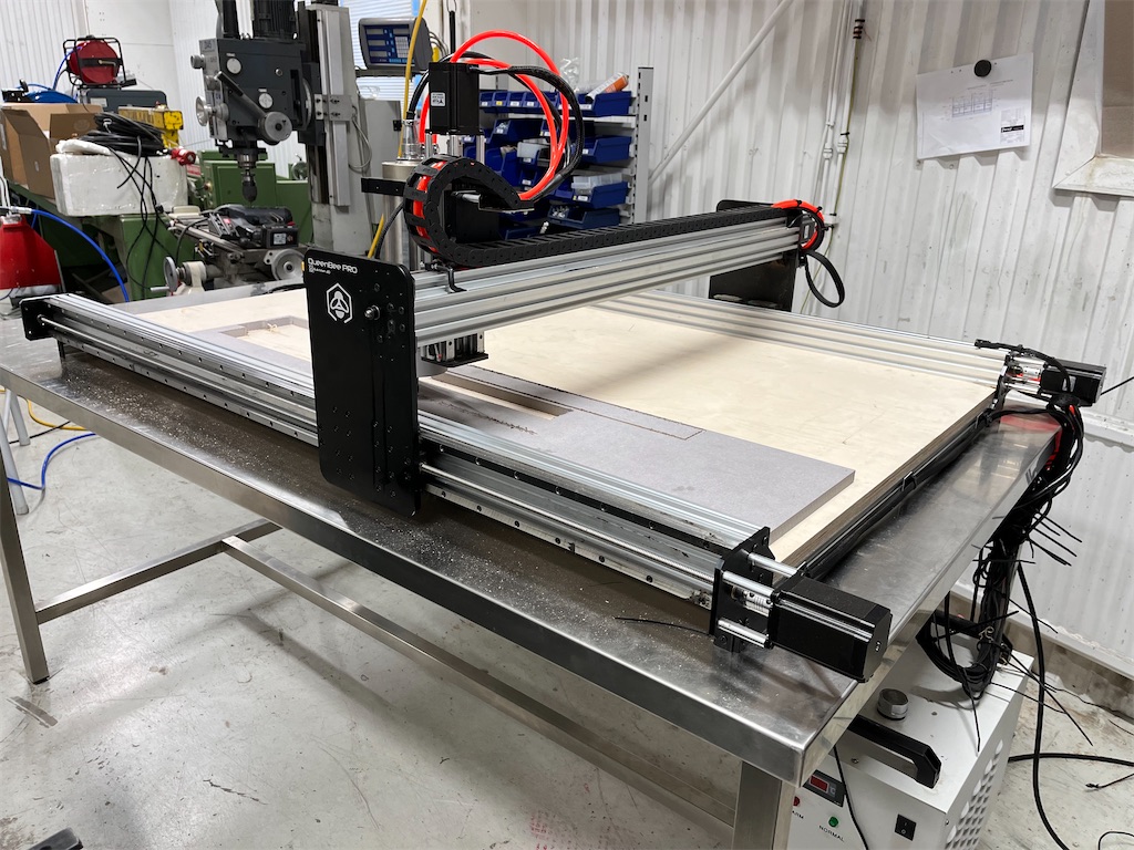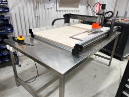 Stålbord som fräsen är monterad på medföljer