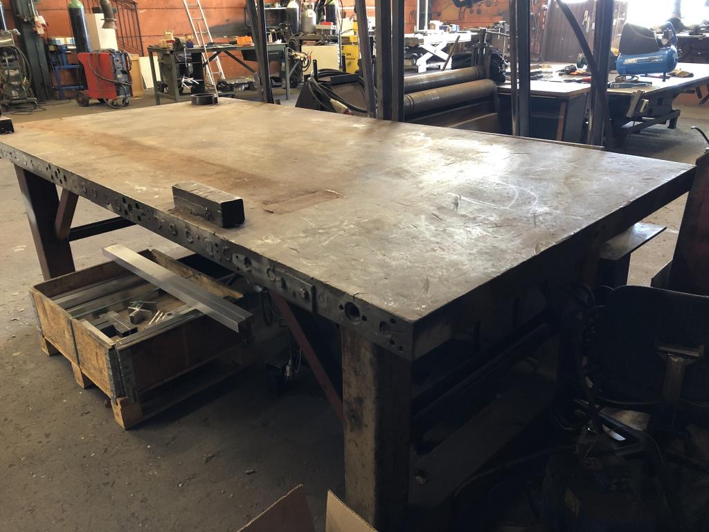 Längd 2600mm bredd 1330mm höjd 920mm tjocklek skiva 75mm massivt stål mkt robust , bara skivan väger cirka 2 ton lågt reservationspris