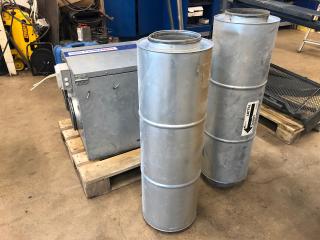 Ej testad. Mått: 700 x 1200 mm. Anslutning för spiro 250 mm.