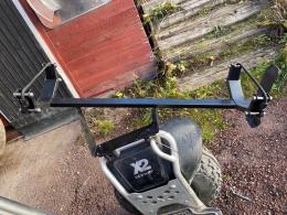Laddkabel, nyckel och stativ för golfbag medföljer. Den ena stänkskärmen skrapar i däcket lite.