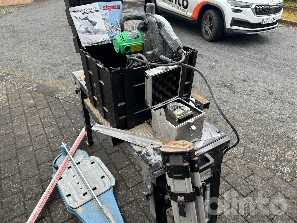 *Självnivellerande plattsättningslaser med stativ, behövs nya batterier.
