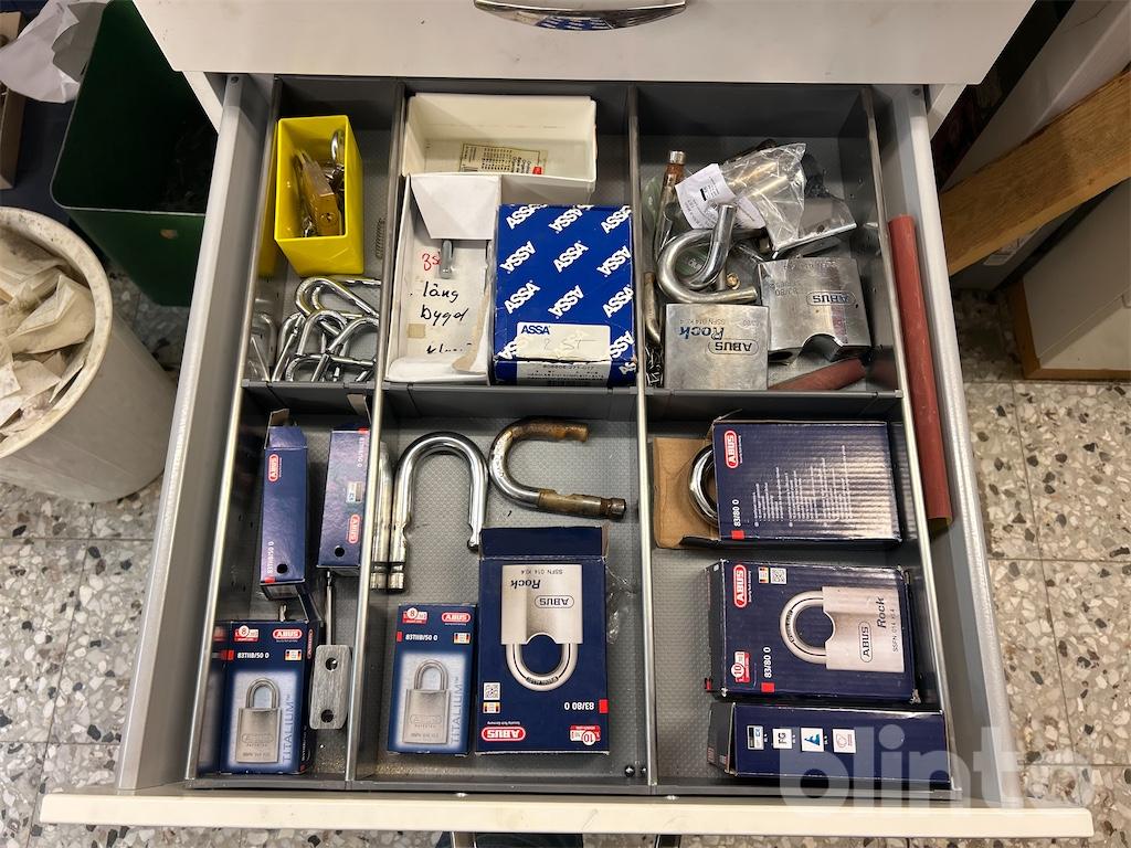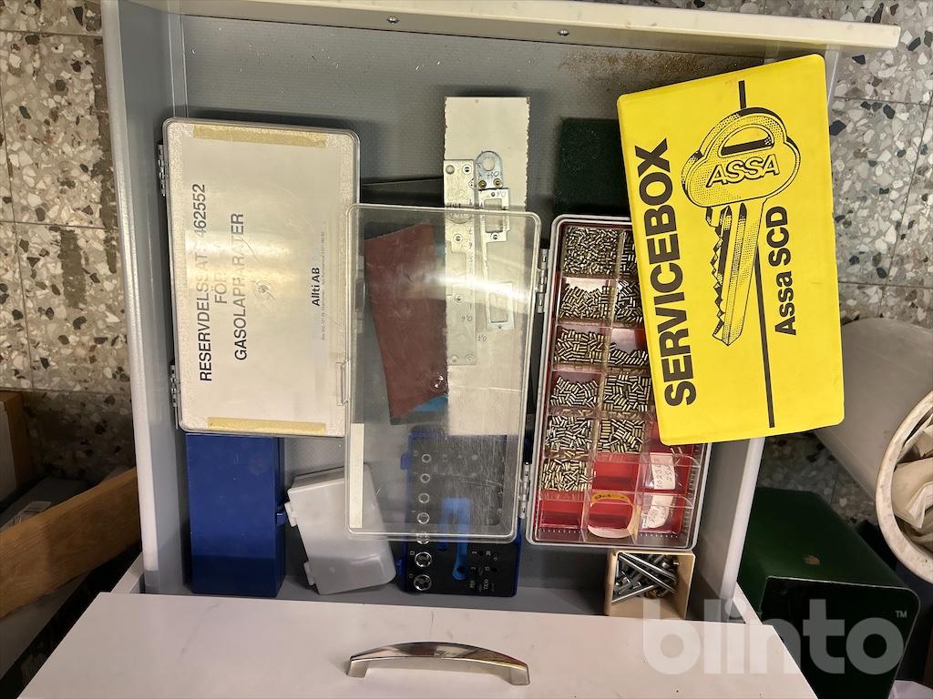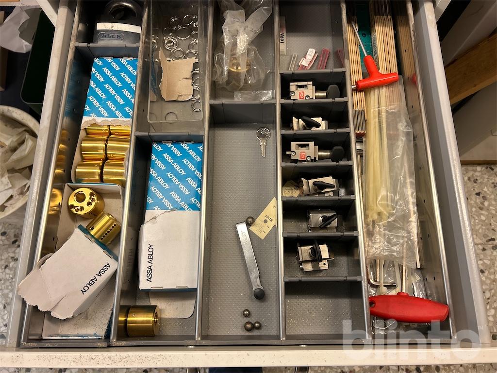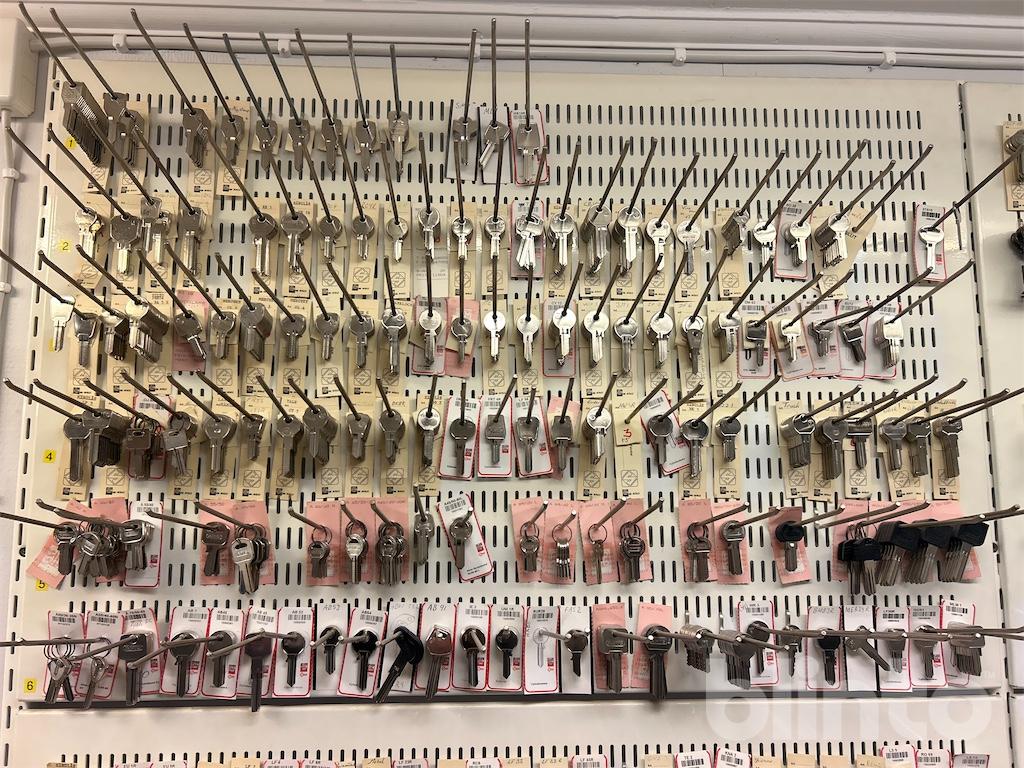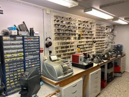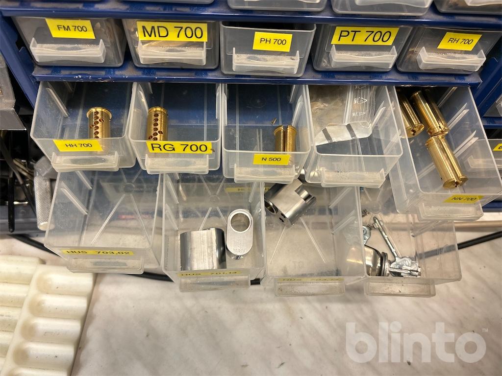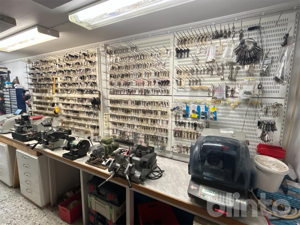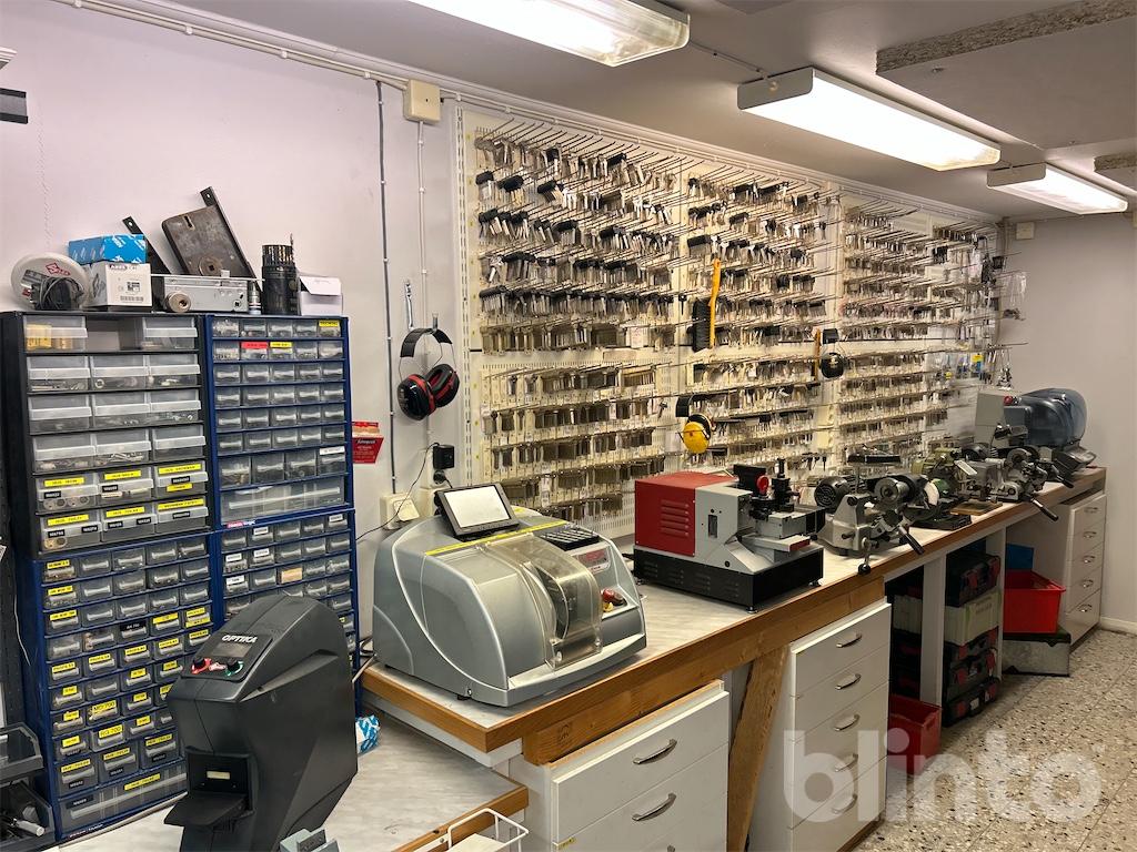 Komplett låsverkstad med maskiner, varulager och hyllsystem