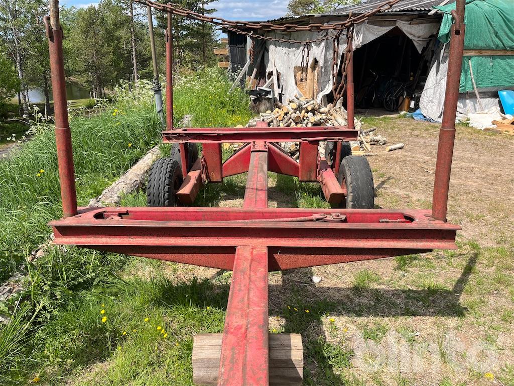 Skogsvagn med fällbara stakar på båda sidorna, även flyttbar boggi. Bakvagnen har vinklade boggiändar samt upphöjd markfrigång i mitten för bättre flyt i körningen i skogen.