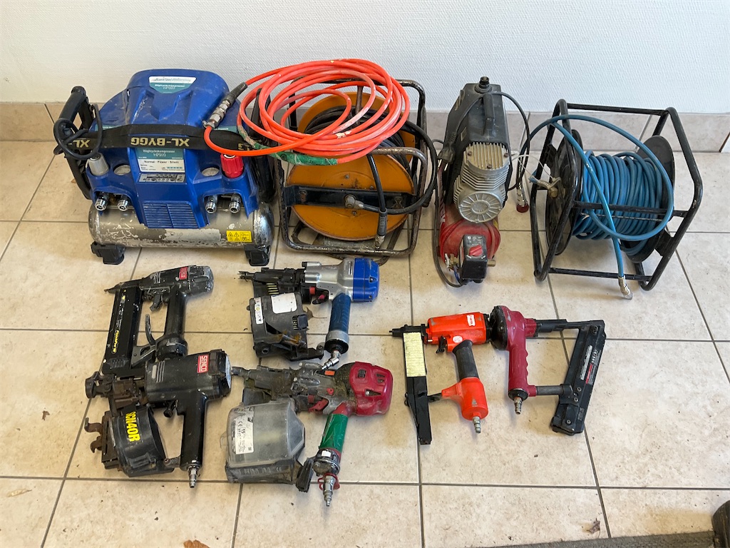 Diverse spikpistoler , slangvindor och kompressorer