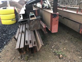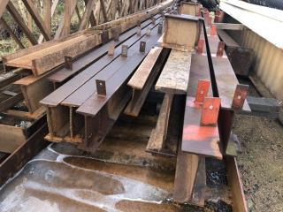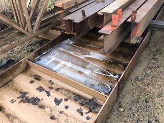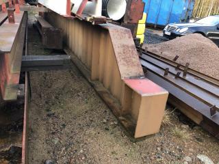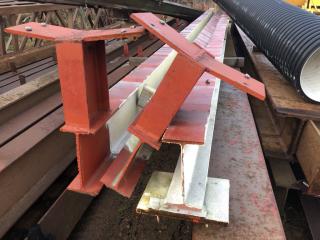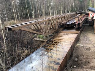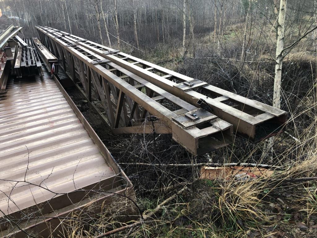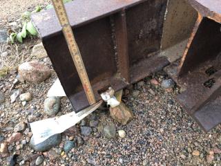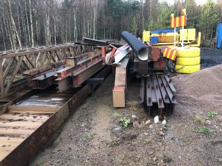 Stålstomme med takstolar för skärmtak se sista bilderna som visar taket vid demontering -Spännvidd ca 19-20m Uppskattad totalvikt ca 30-35ton Lasthjälp finns Se bilder för mer info