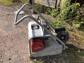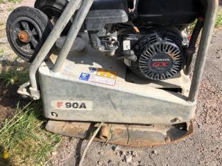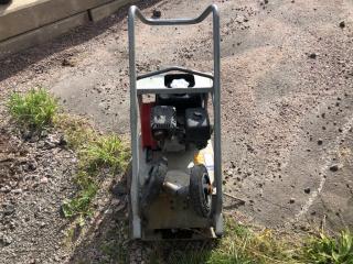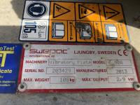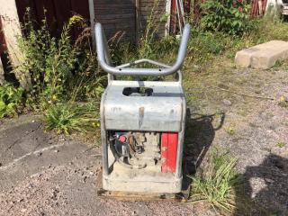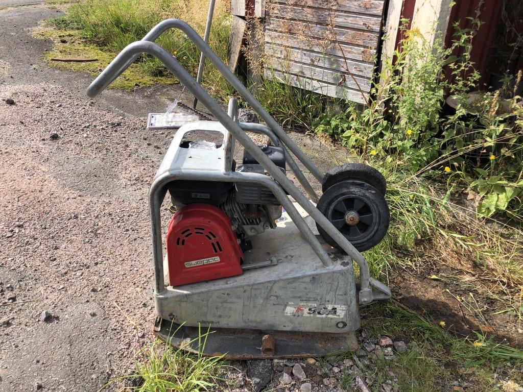 Swepac F90A asfaltpadda/markvibrator. År: 2013. ID: 203429. Effekt: 2,9 kW. Vikt: 108 kg. - Kranen till vattentanken är defekt. För övrigt i fungerande skick.