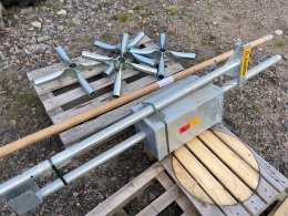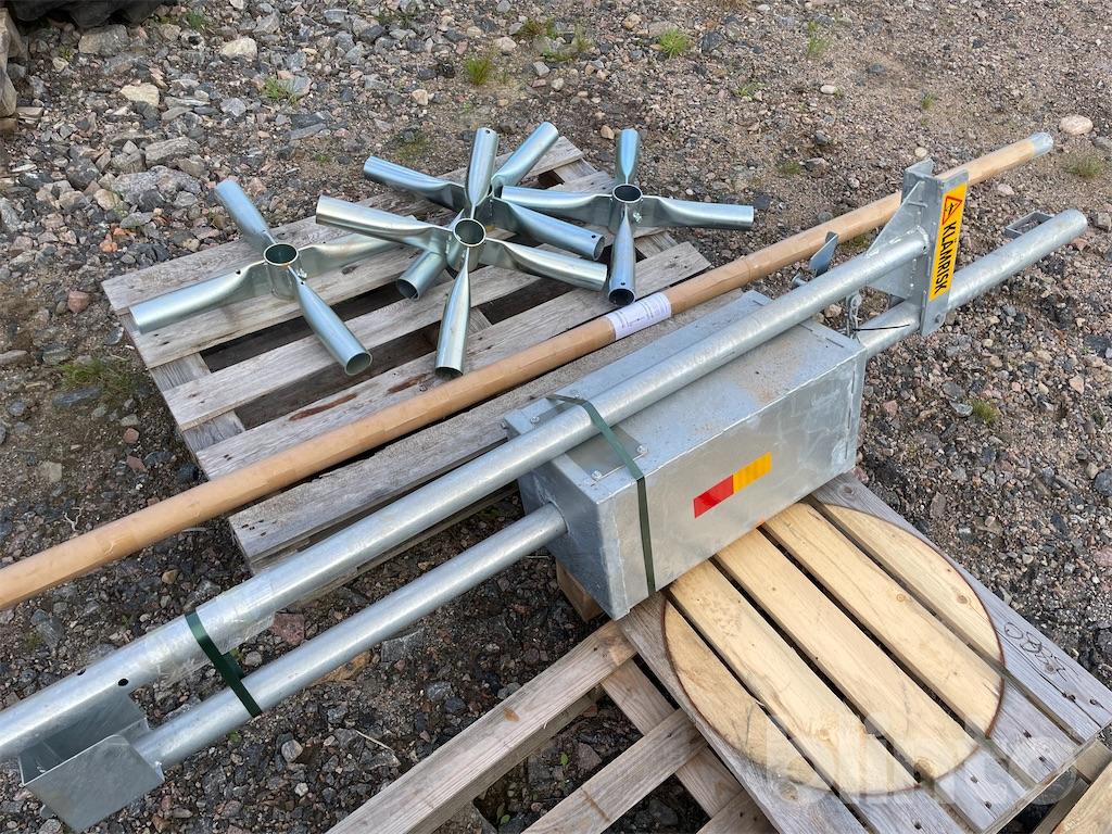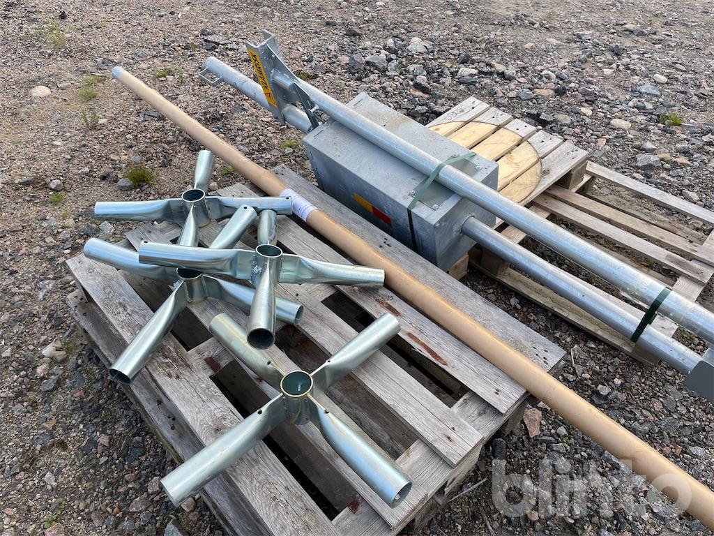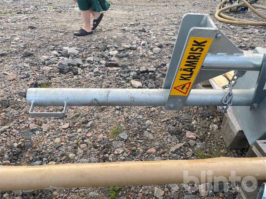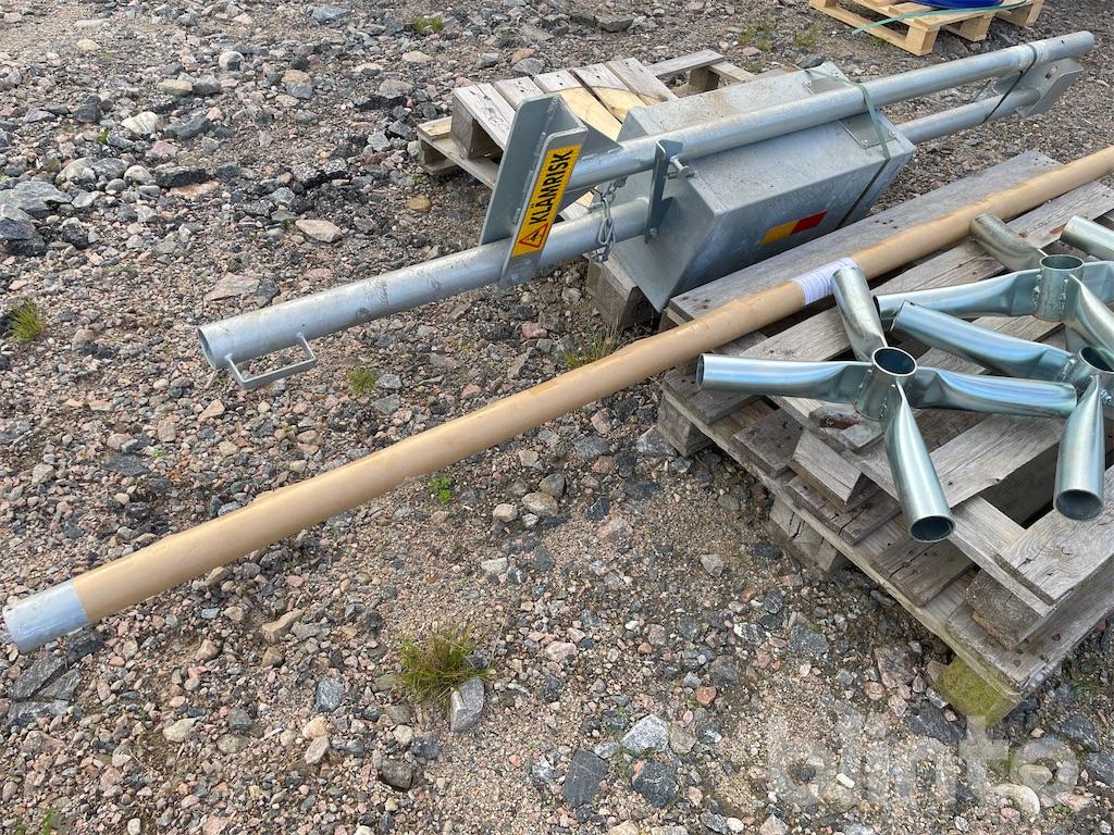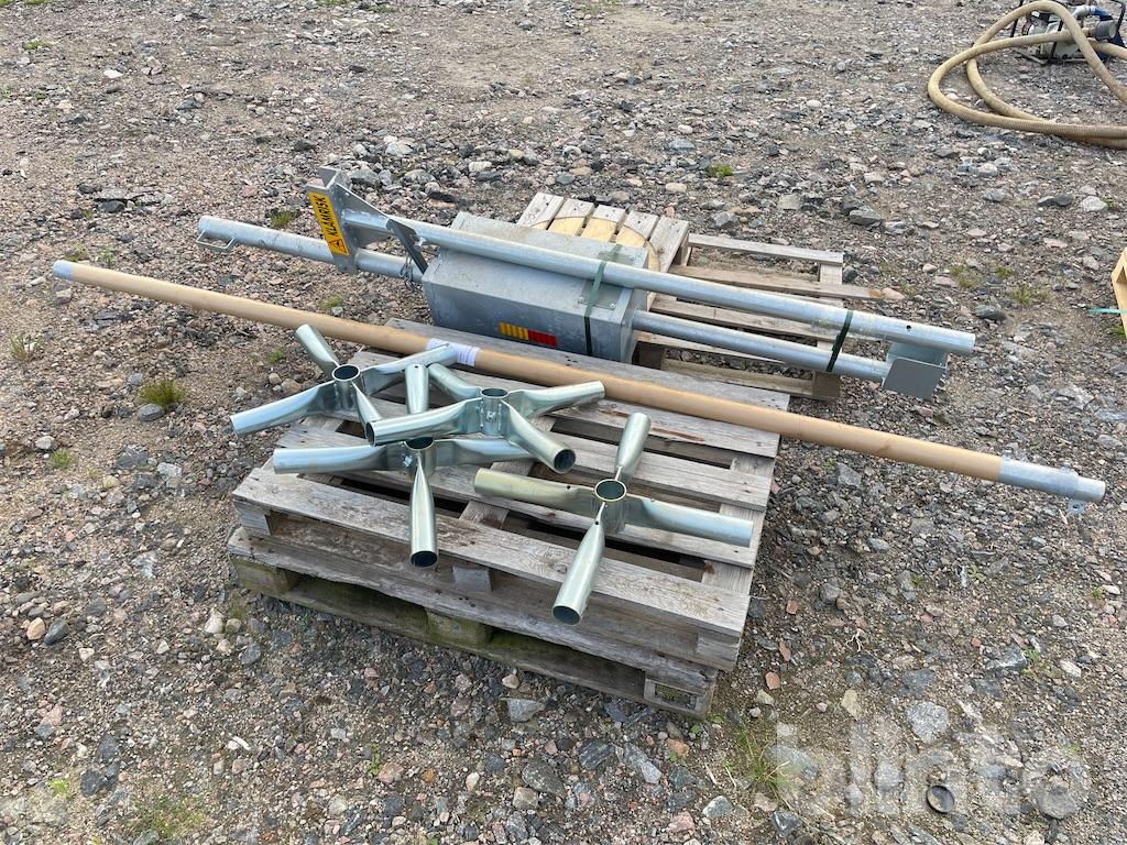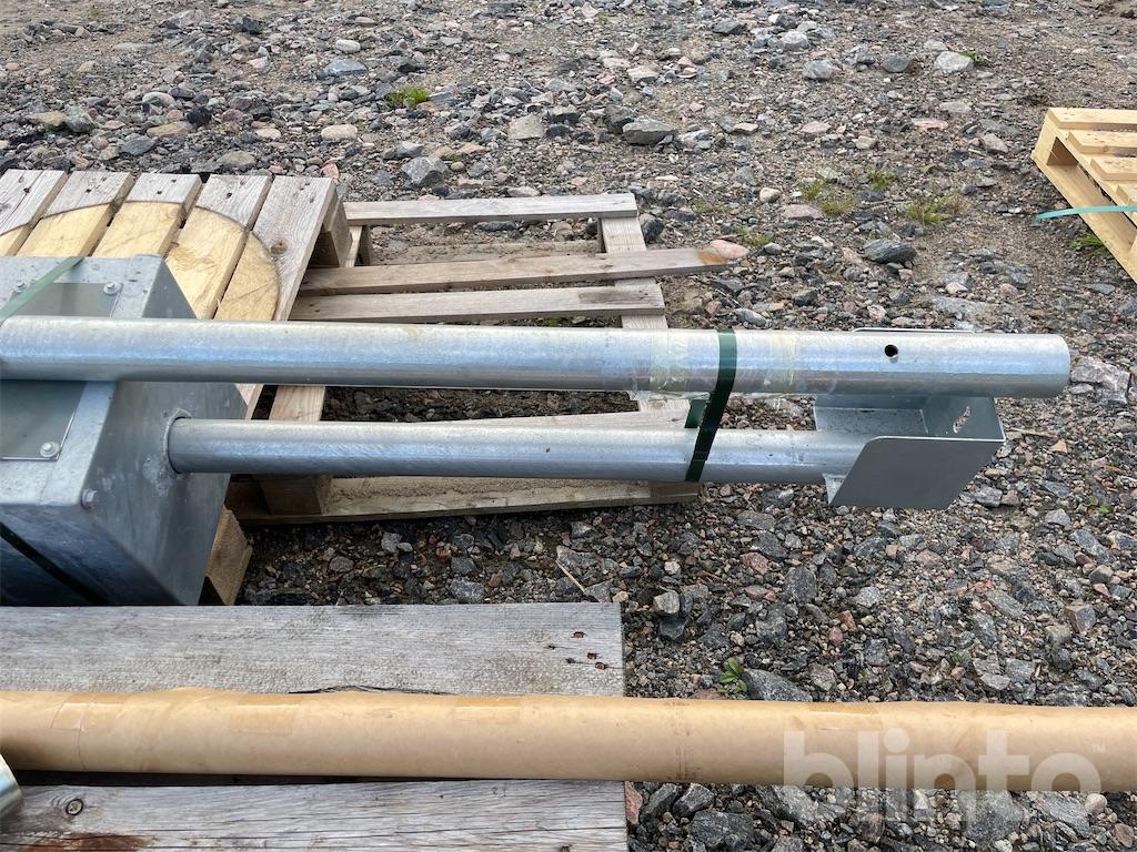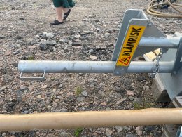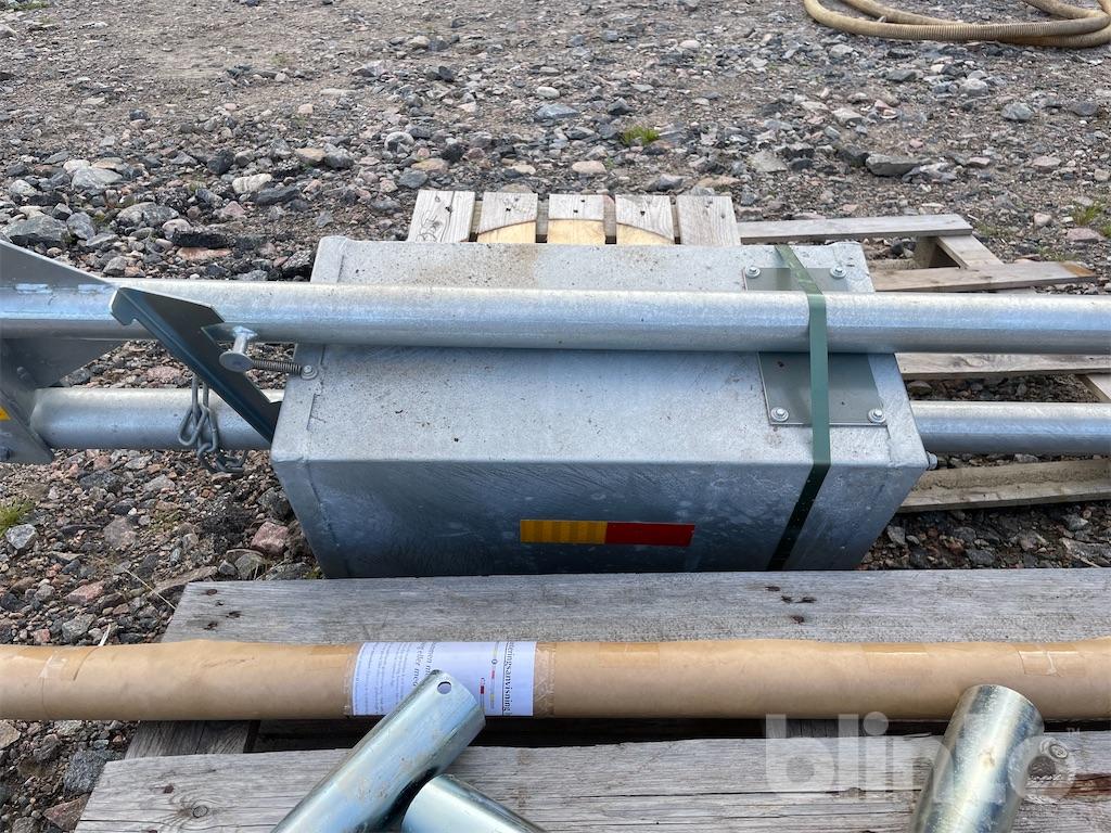 The counterweight container is filled with sand, gravel, or similar, to achieve a balanced position on the boom.