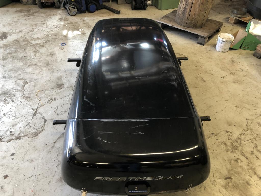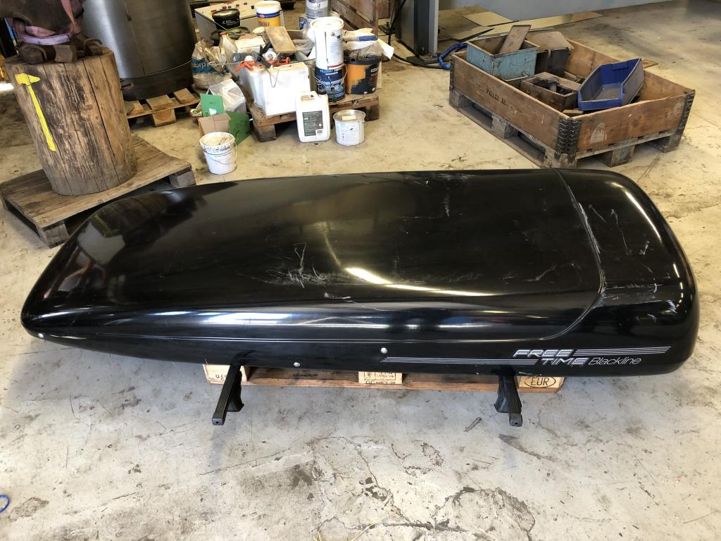En begagnad skidbox som är hel Har en del revor och skrapmärken
