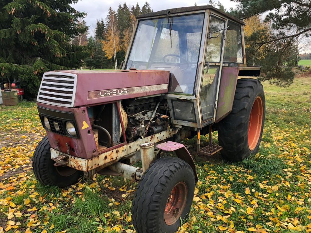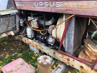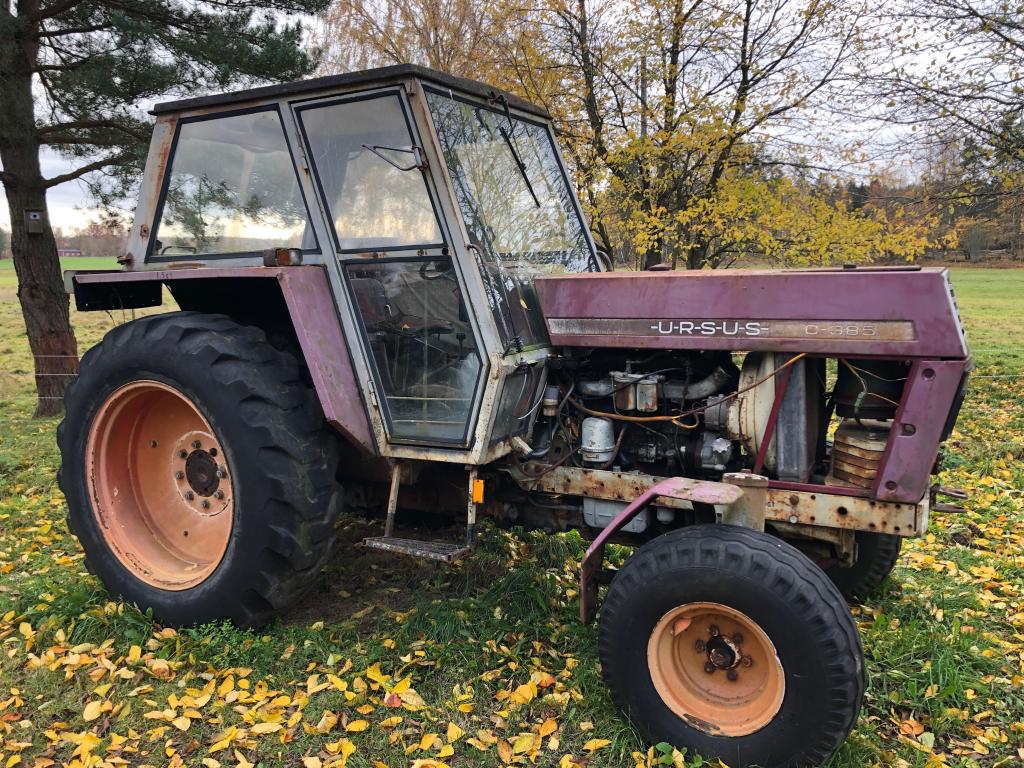 Ursus C-385 Inga papper troligtvis årsmodell 1973-1974 Defekt motor sitter fast Säljes som renoveringsobjekt / reservdelsmaskin Däck fram 11,5 / 80-15 slitna Däck bak står inget på dessa med det är troligtvis 38 hjul slitna Mycket delar att ta på maskinen