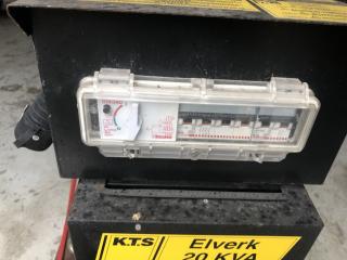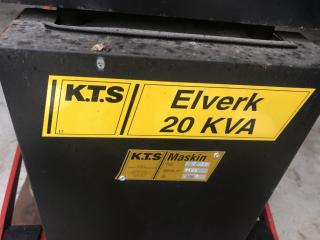 Traktordrivet elverk -Fabrikat: K.T.S -Modell: A20 -20Kva -Mkt få gångtimmar Full fungerande i bra bruksskick Se bilder för mer info