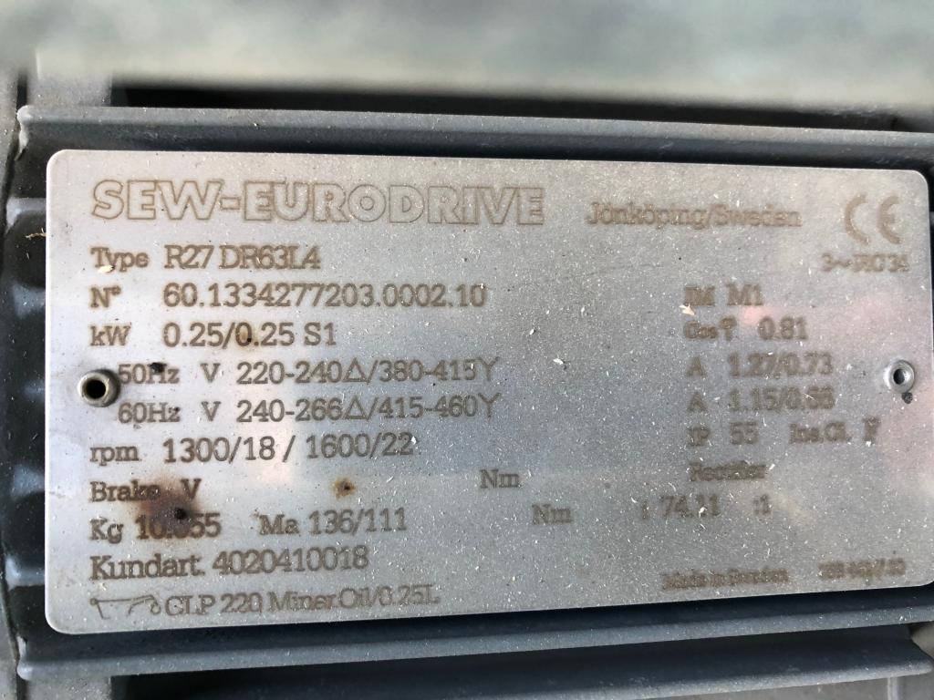 Motoriserat rullband. SEW Motor. I nyskick. Längd: 2350 mm. Bredd: 500 mm. Justerbar höjd på benställning.