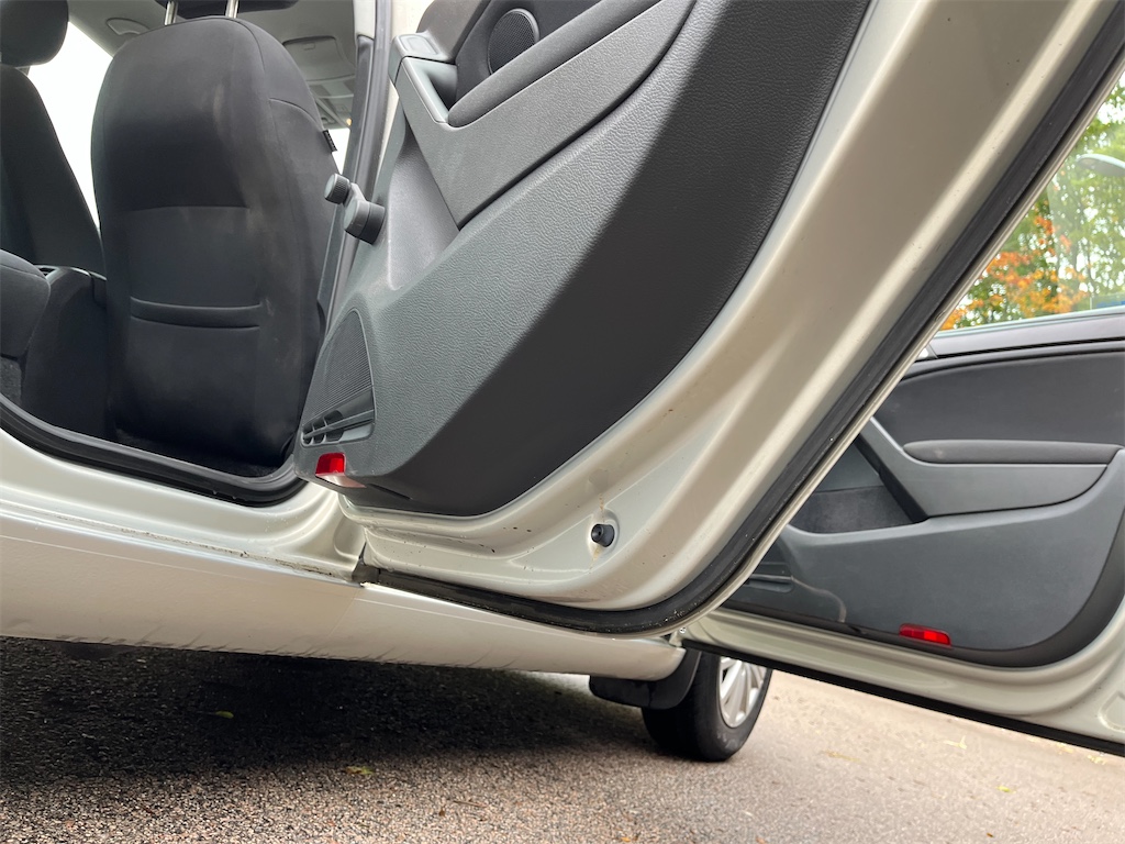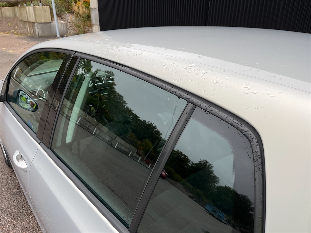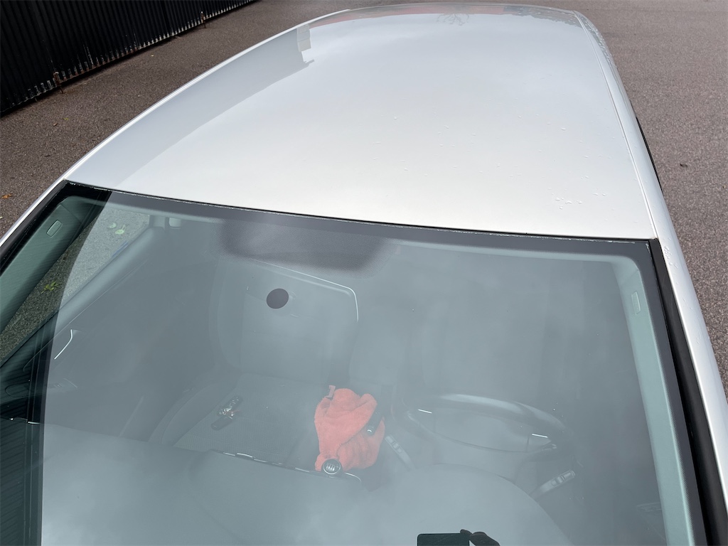 Fläcken i passagerarsätet är vatten då det legat en blöt trasa där