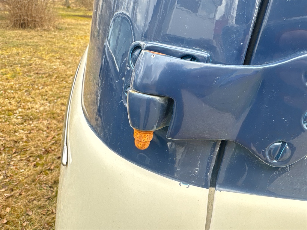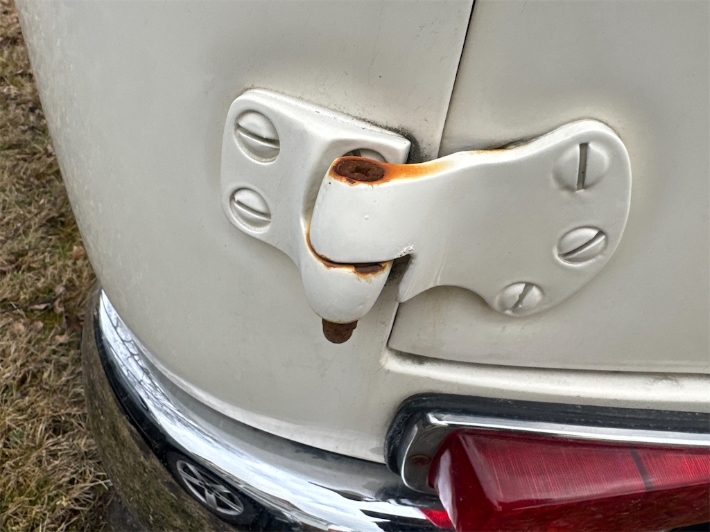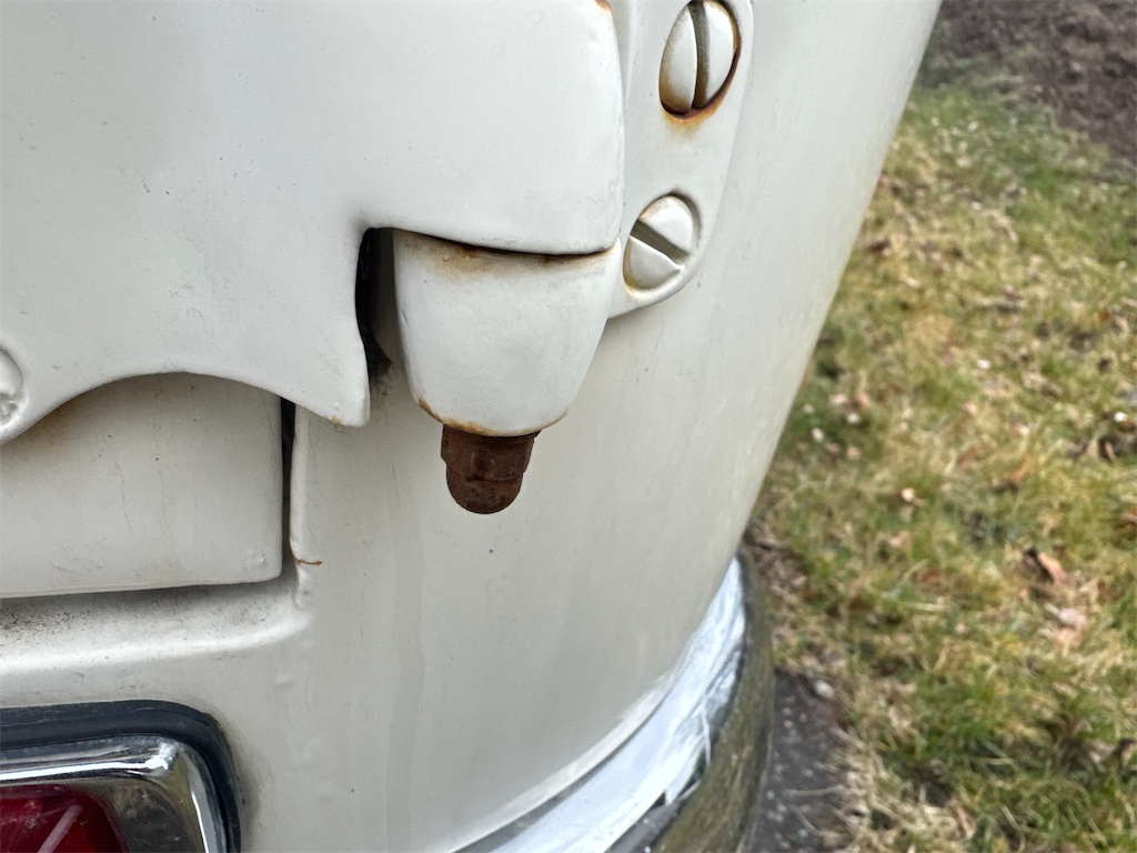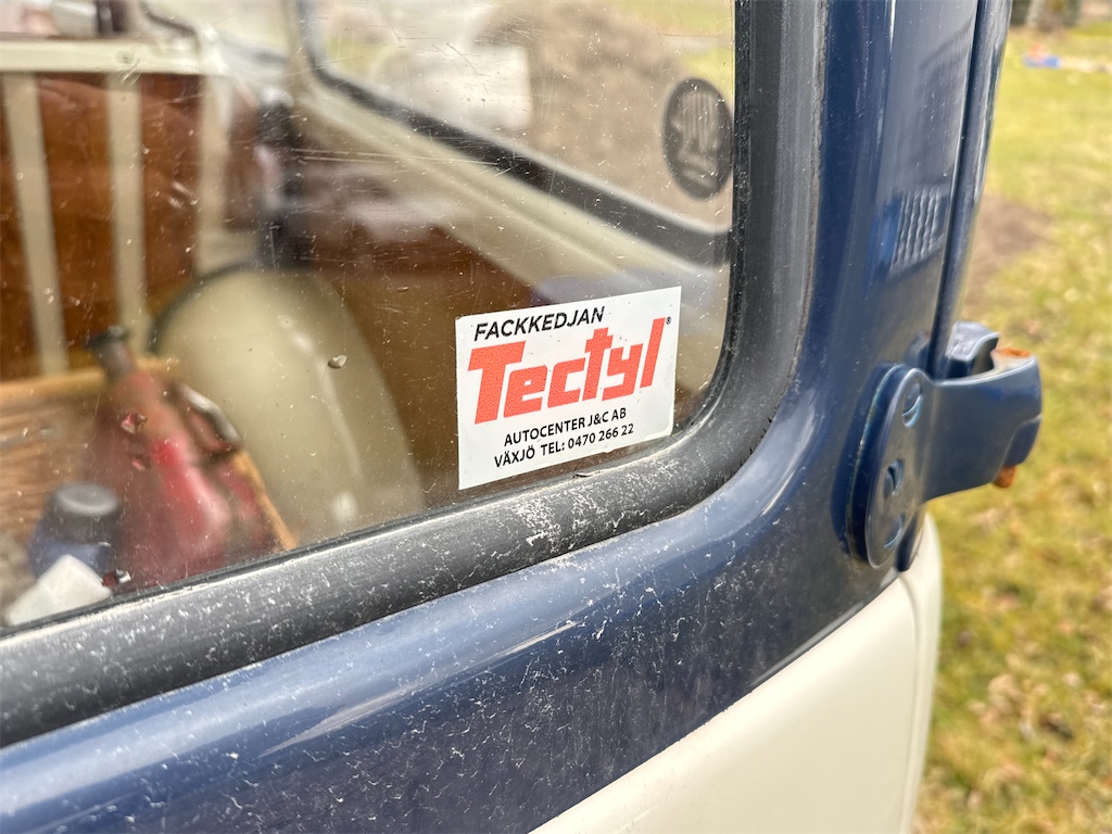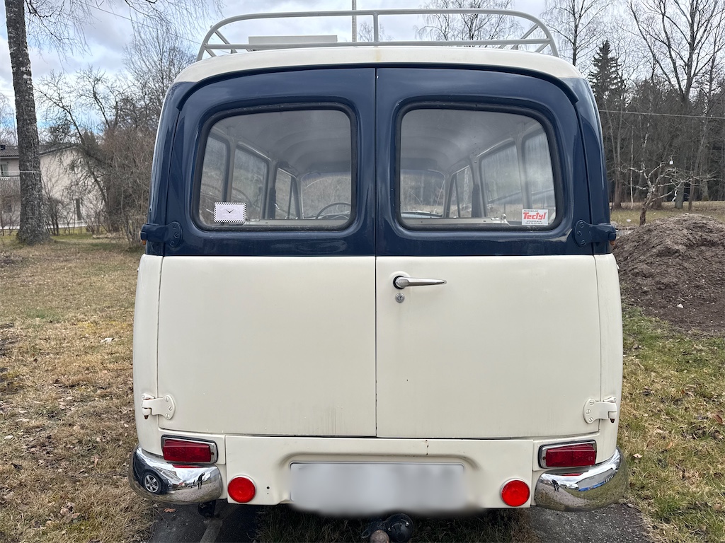 Finns några anmärkningar i form av rostiga sprintar i bakdörrarna samt nån lackskada bak, se bilder. Blinkers fungerar dock inte, ej felsökt.