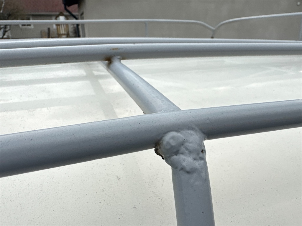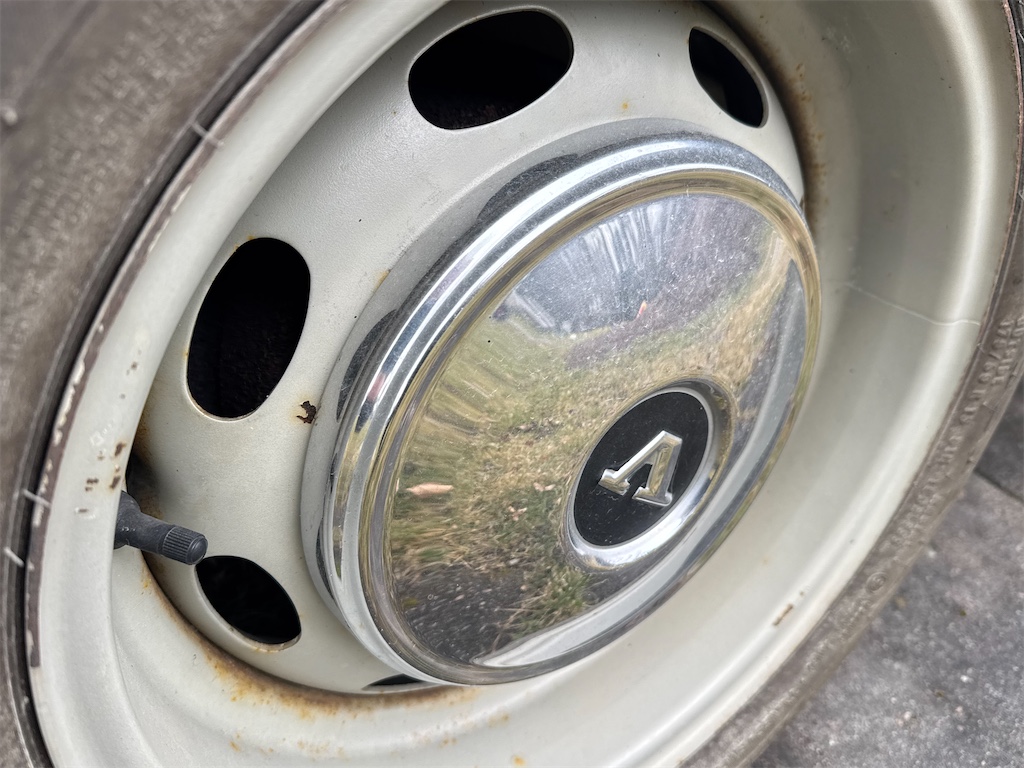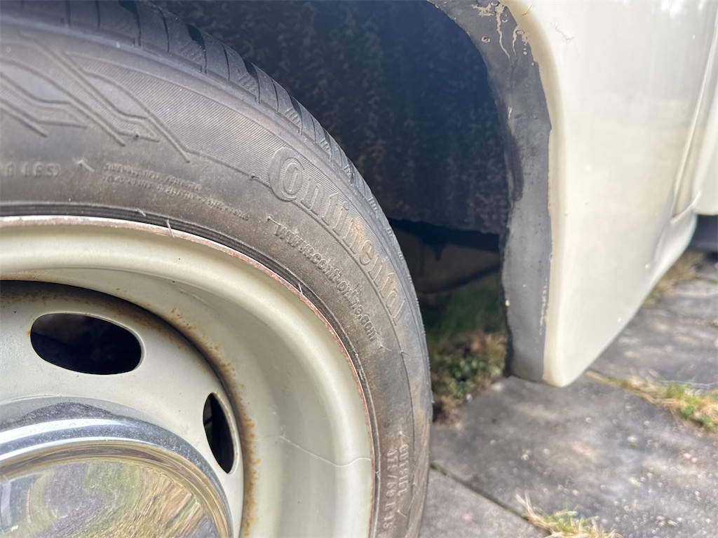 Original plåtbreddade fälgar med fina sommardäck. Pulverlackerat takräcke.