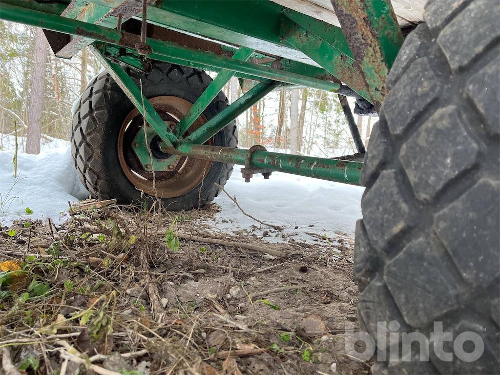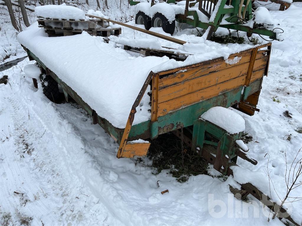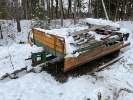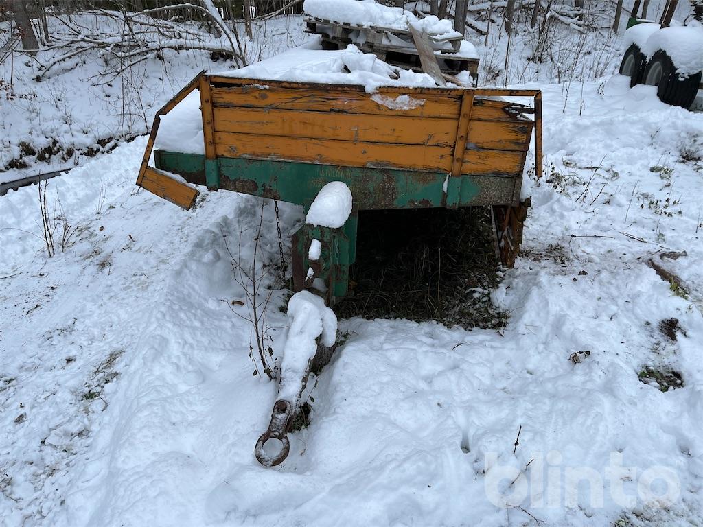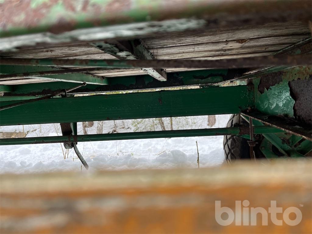 Enkel flakvagn, enaxlad, fd gödselspridare med träbotten i renoverings skick