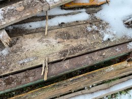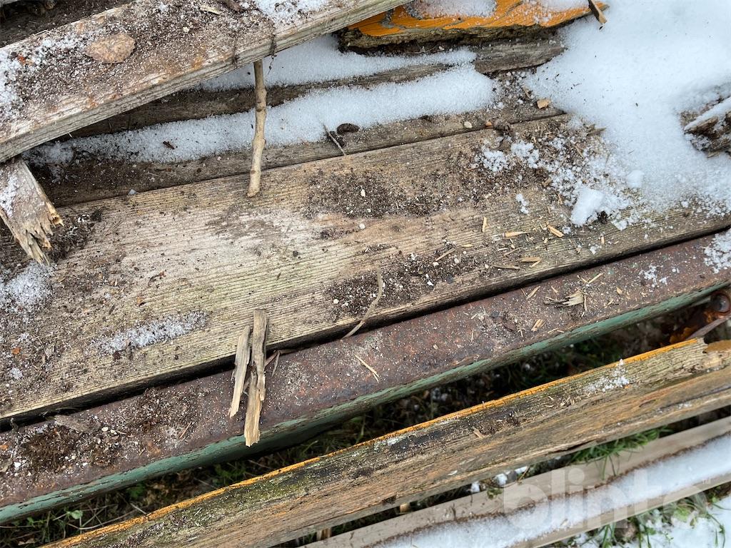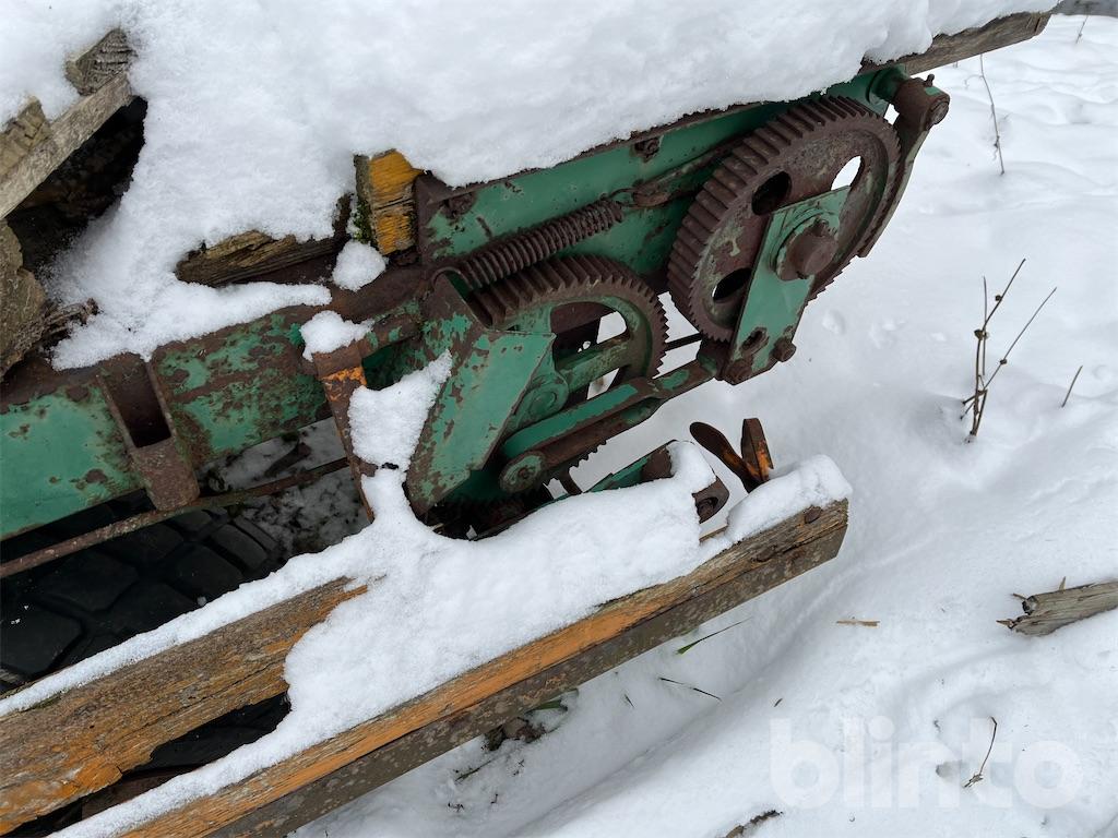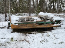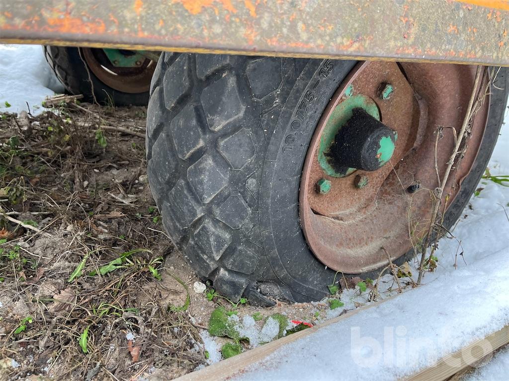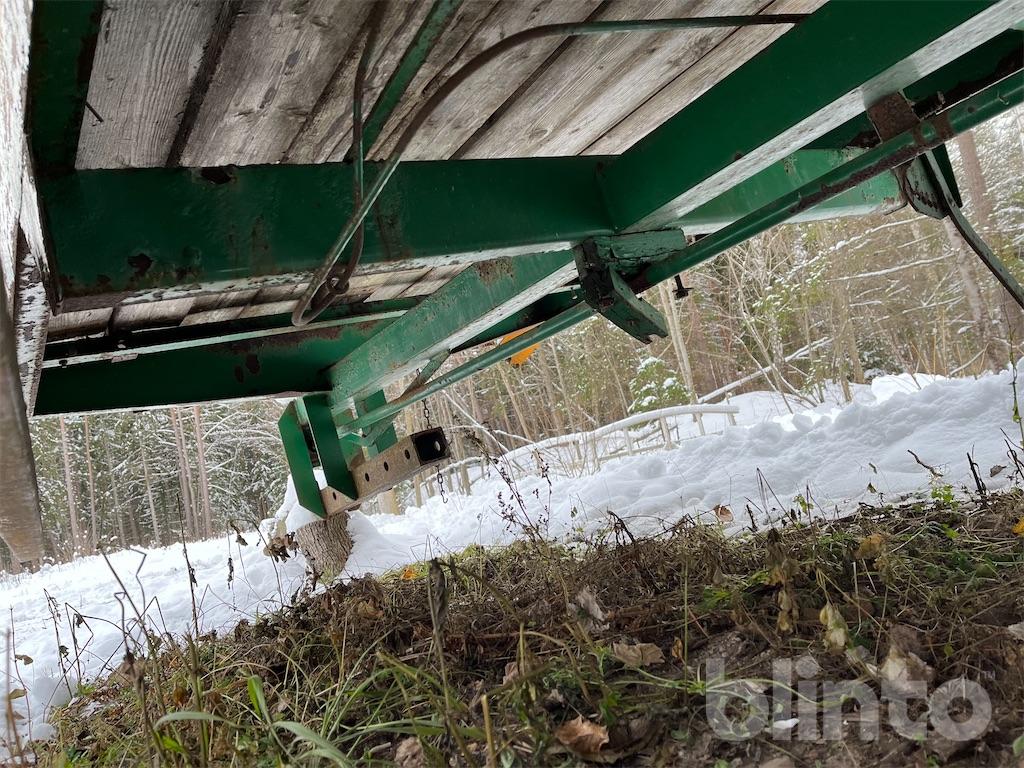 Enkel flakvagn, enaxlad, fd gödselspridare med träbotten i renoverings skick