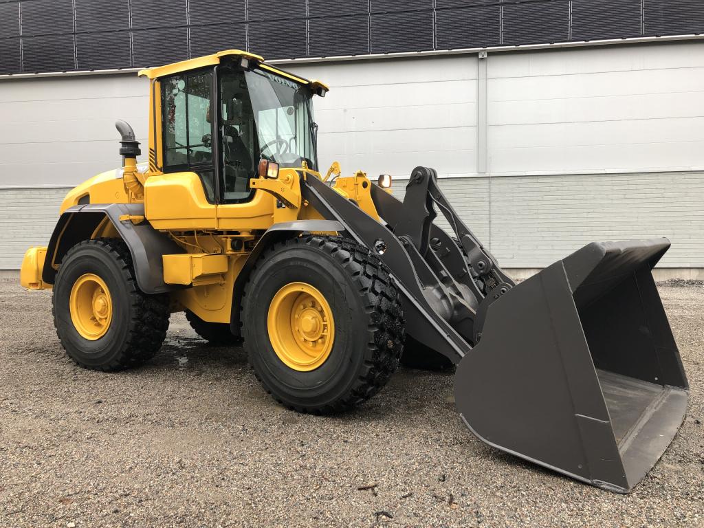 VOLVO L60G Årsmodell: 2013 Timmar: 4835 h Modell: L60G Vikt: 13600 kg Motoreffekt: 120 kW Snabbgående: 50 km/h - CE märkt - Centralsmörjning - Automatisk motorhuv - Backkamera - Nya däck - Nymålad - Skopa Volvo original - Värme - AC lampa lyser - Vänster framruta sprucken (se bild) - Motorn genomgången av SWECON September 2019
