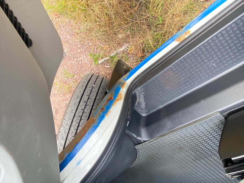 En del rost i trösklar och framskärmar