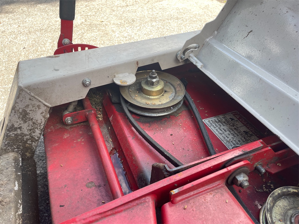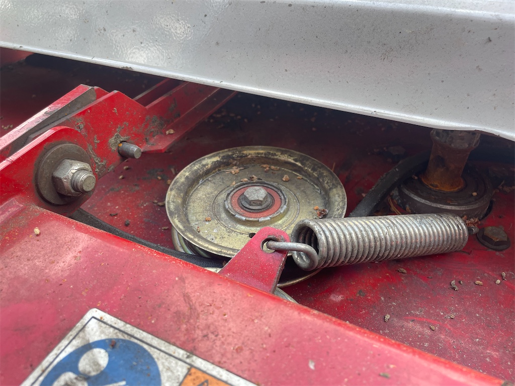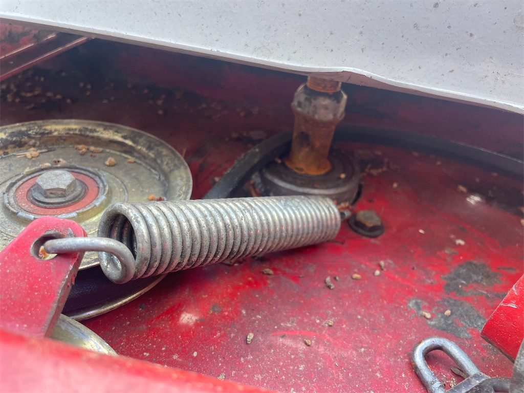 Lagrena i klippdäcket glappar i dom yttre knivarna, den mittre axeln är defekt remhjulet saknas / har ramlat bort se bilder