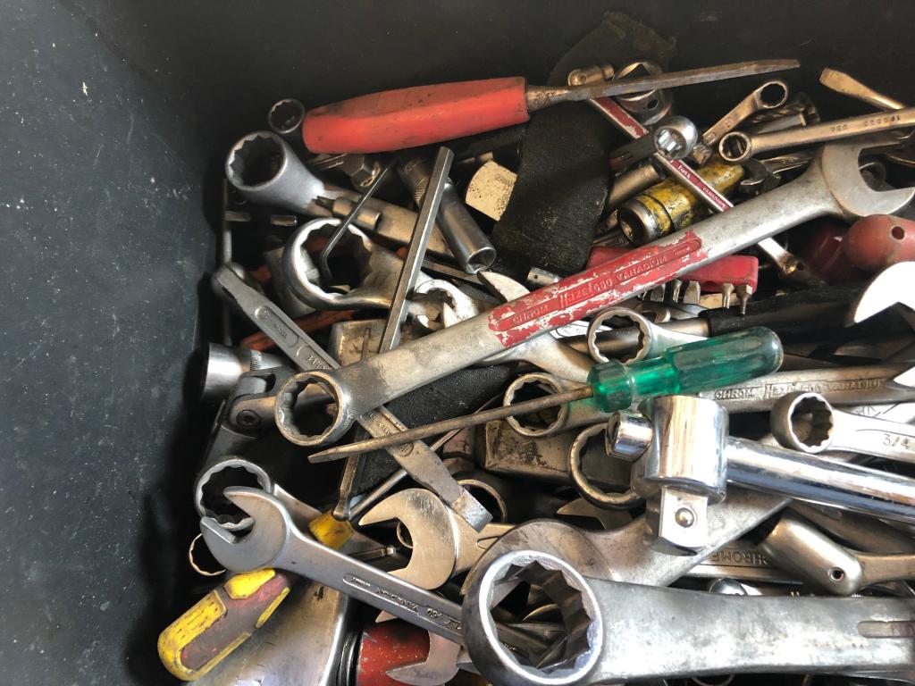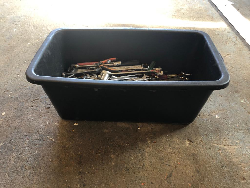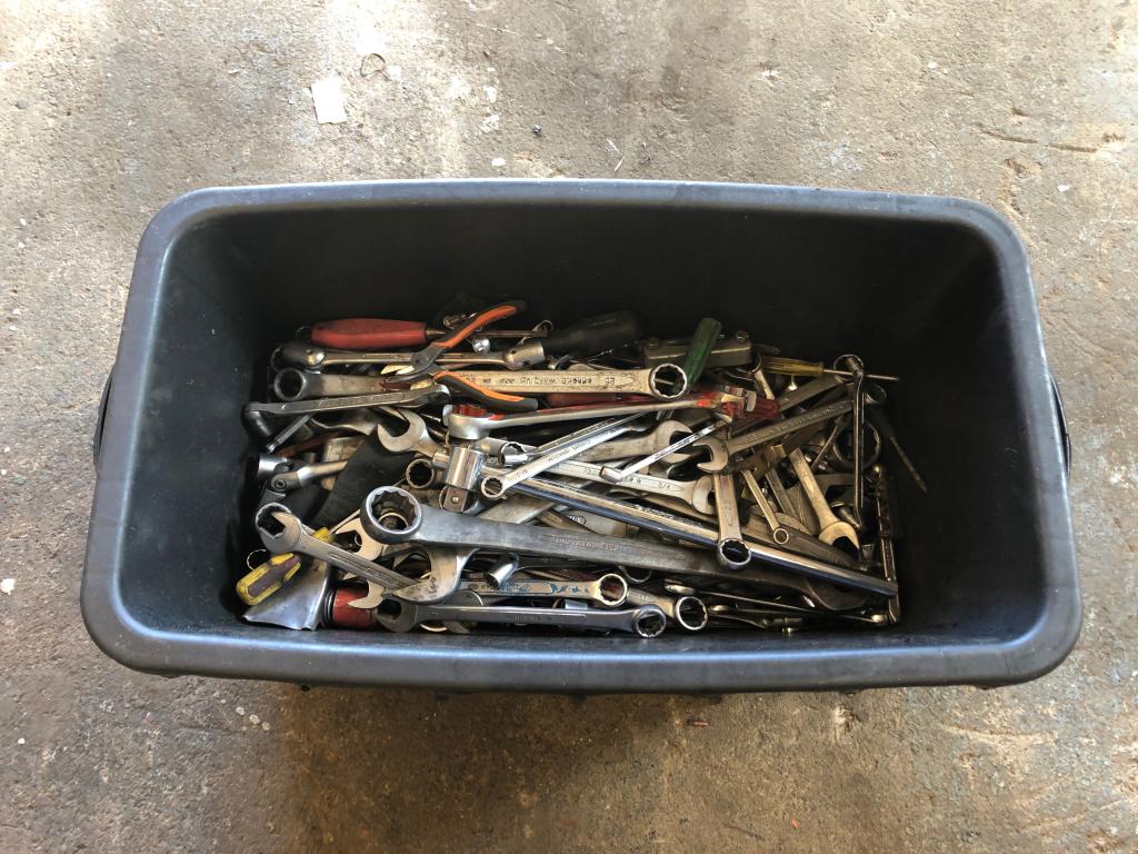 Plastback med div. verktyg Innehåll: Lednycklar, u-ringnycklar,Hylsor,Insexnycklar,Tänger mm.