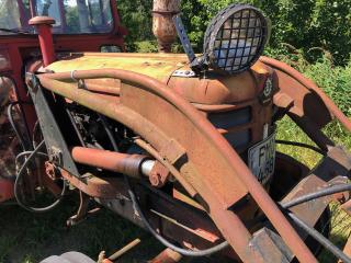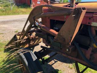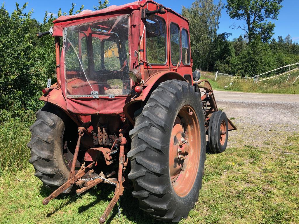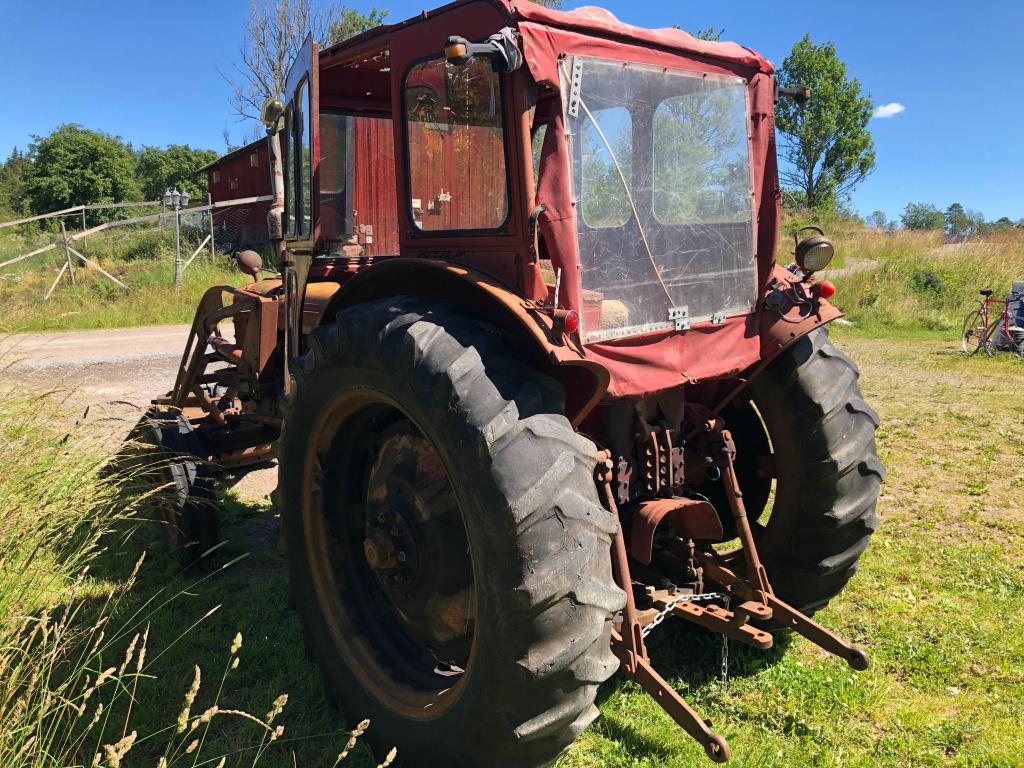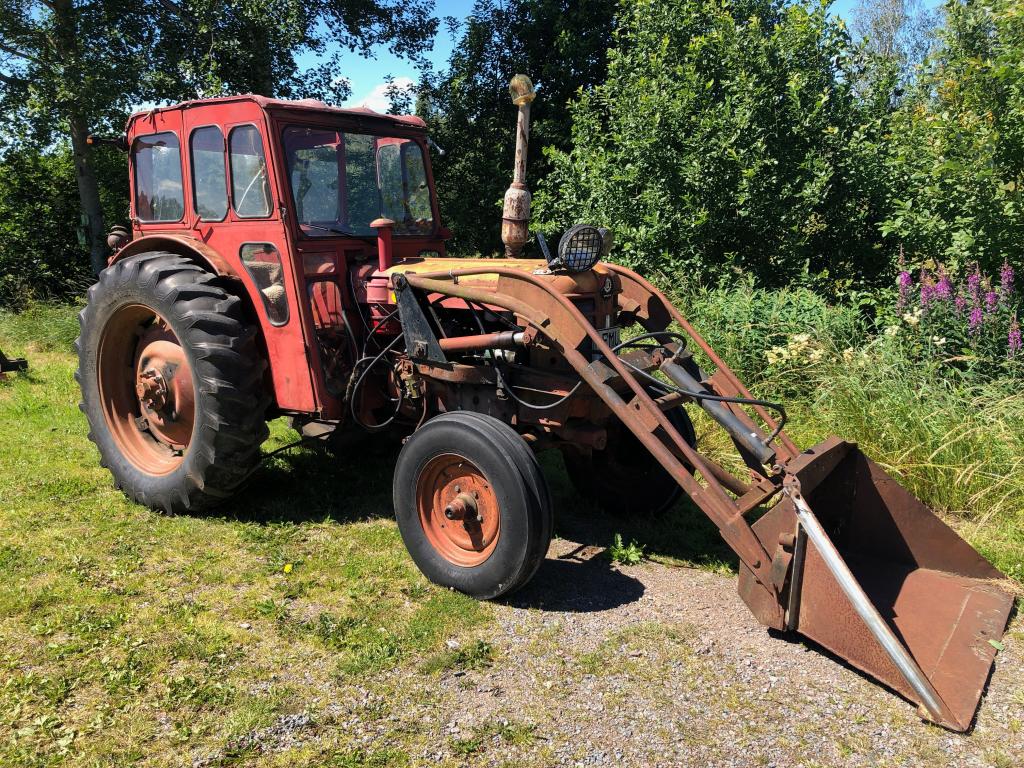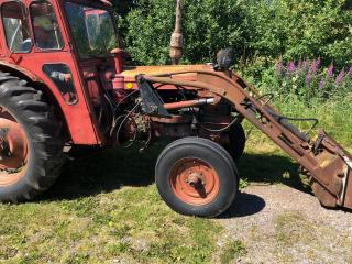 Volvo BM 350 Bolinder Munktell . Årsmodell 1966 , Timmar 26308 ? . Med Ålö Rörrams lastare med tillhörande 2 st skopor . 1 st snöskopa 2,10 cm & 1 st material skopa 1,30 cm , Snökedjor & bakbrygga . Däck bak 14,9-38 & Fram 7.50-18 . Sedan följer det med 2 st extra framhjul 7,50-16 som sitter troligtvis på Ferguson fälg . Fungerande Brukskick med glapp & läckage efter ålderns rätt . Det följer med nytt galon till taket se bild .