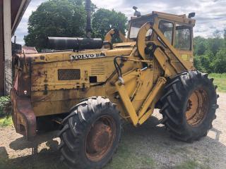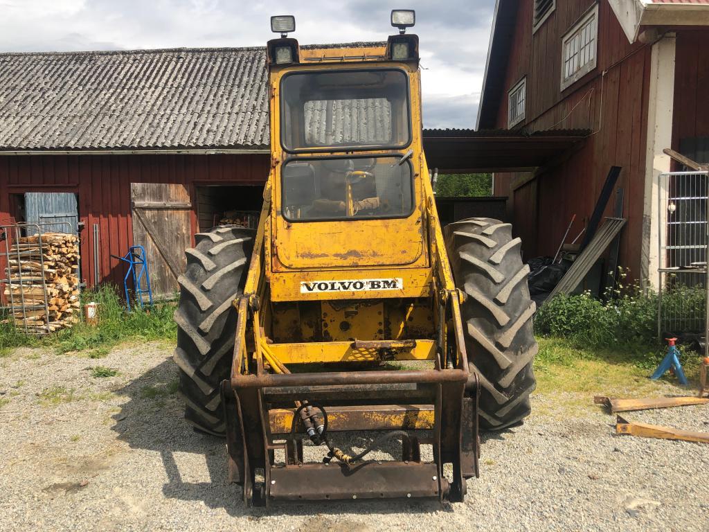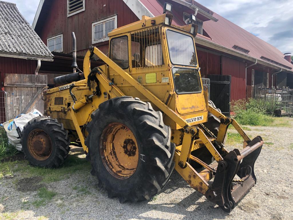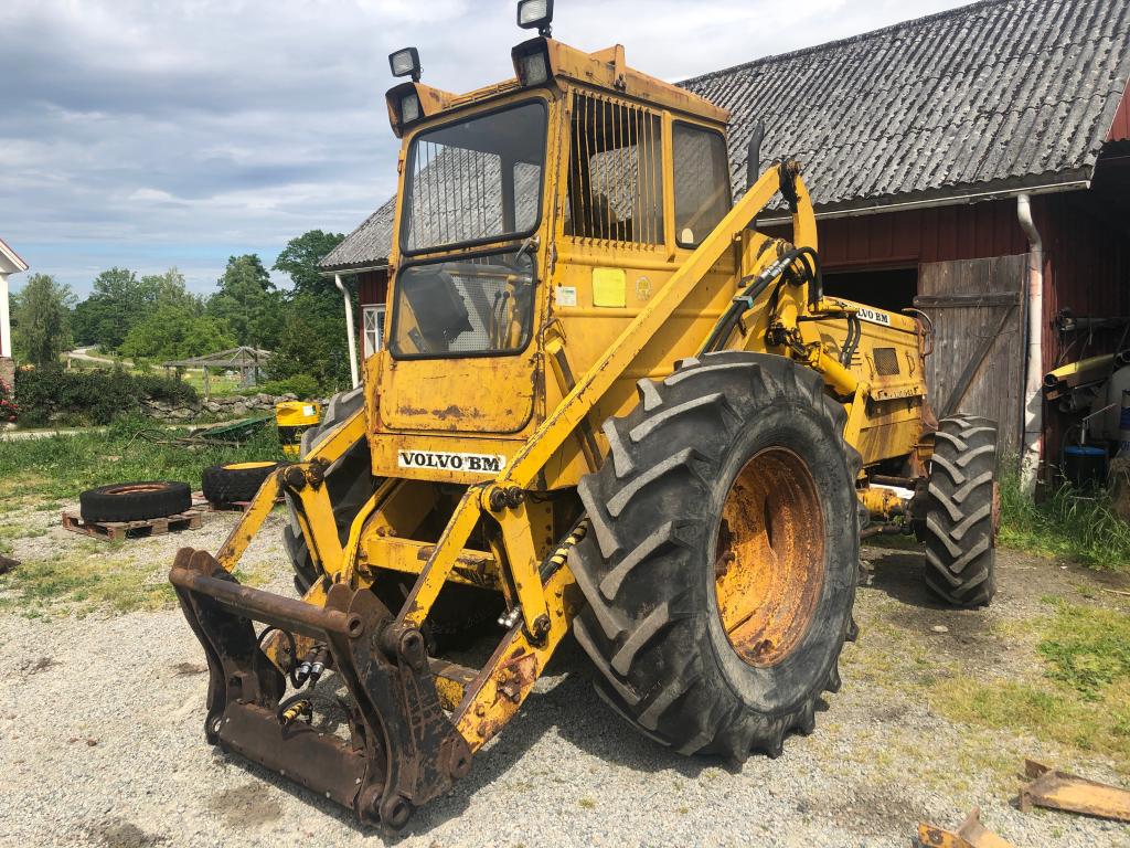 Årsmodell: 1976 Timmar: 14934. Tillverkningsnummer: 8076. Fäste: Stora BM. Fyrhjulsdrift, 4 WD. Hydrauliskt redskapslås. Extra hydraulik. Arbetsbelysning. Tomvikt: 7880 kg. Samma ägare senaste 20 åren. Normalglapp för skick och ålder. Småläckage från dieselpump. Inga redskap ingår. Maskin i fungerande skick.