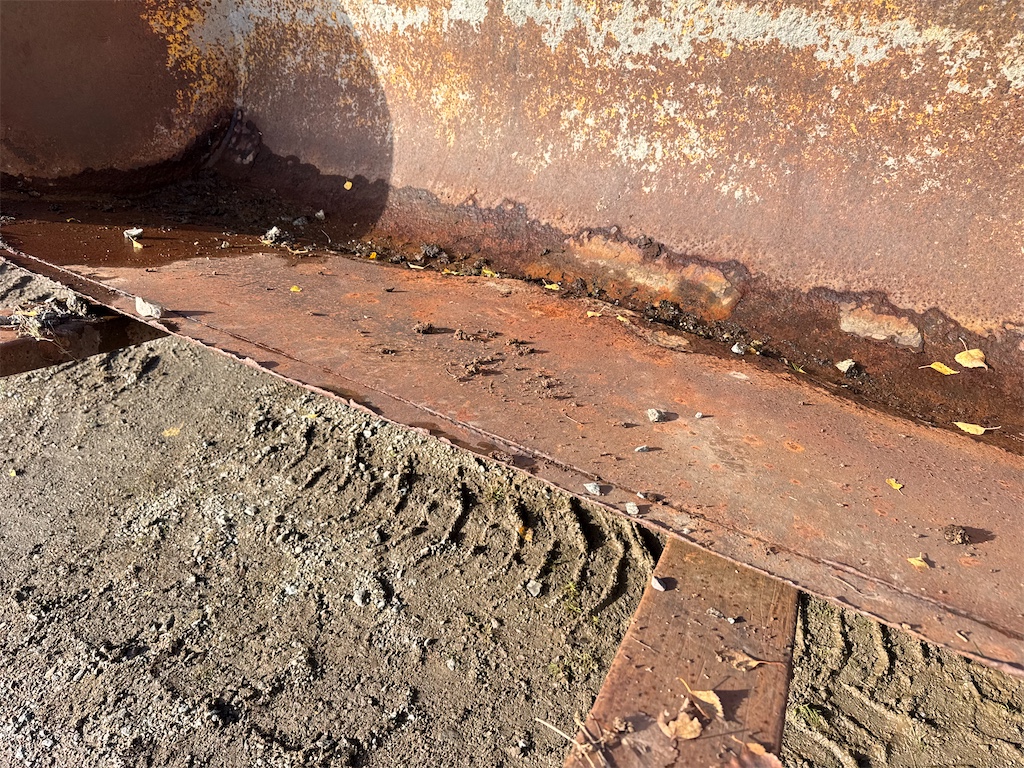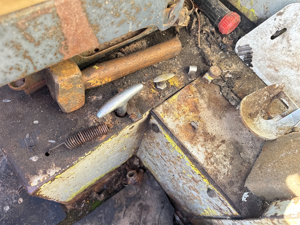 Rost, bucklor finns. Se bilder. Ett nytt framdäck, resten slitna. Bromsar ur funktion.