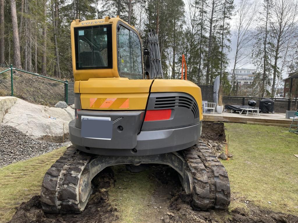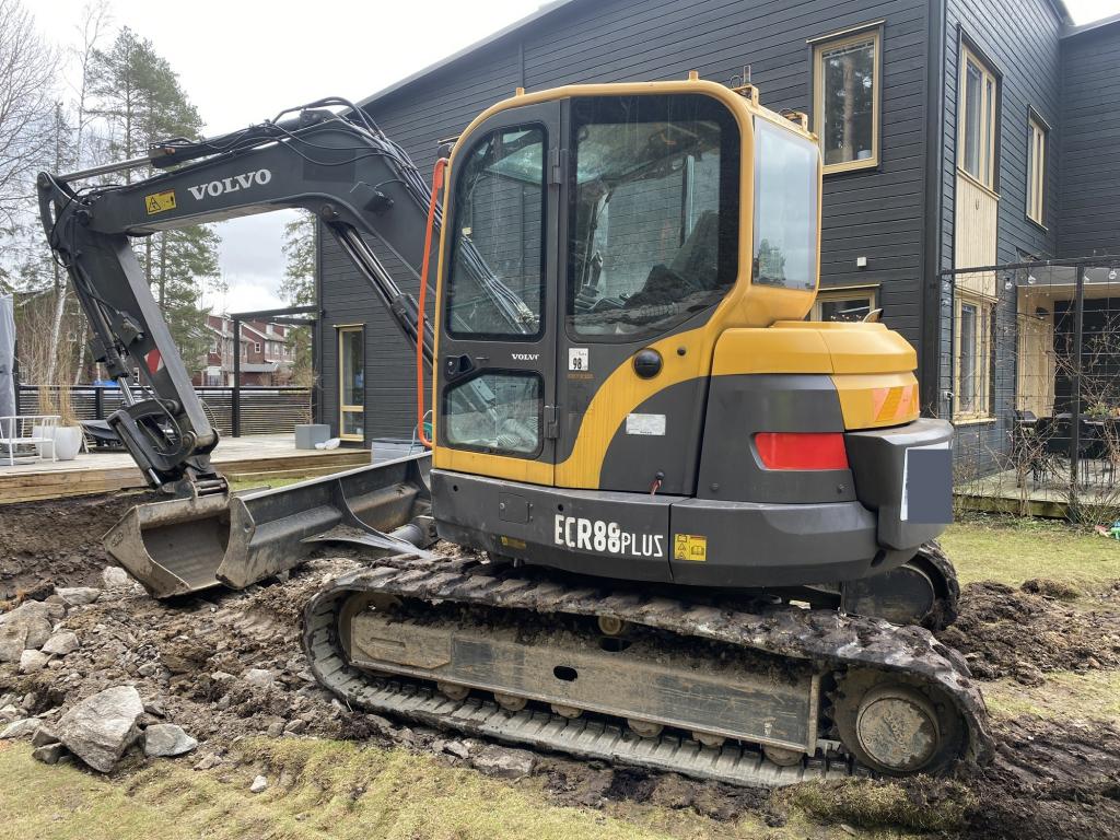 Bandgrävare Volvo ECR88 Plus som säljs på uppdrag av ett entreprenadföretag.
