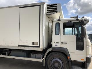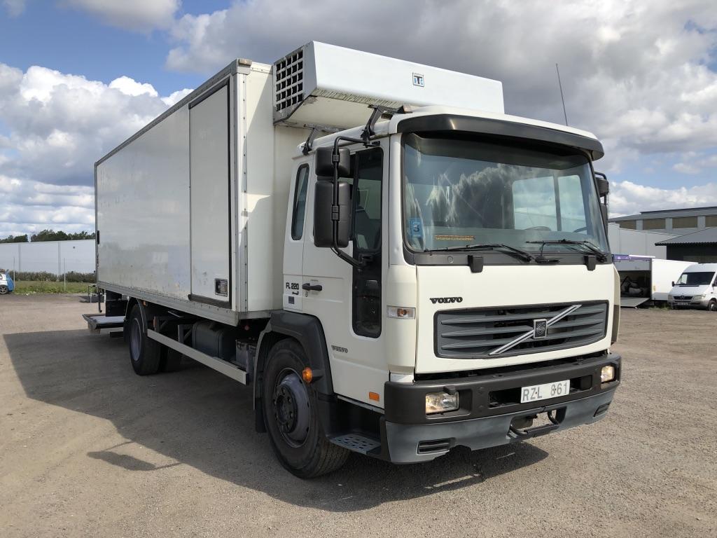 En Volvo FL6 H 4x2 med skåp År: 2001 Körsträcka: ca 400 000 km Bakgavel-lift Kylaggregat (ej testat) Felfri maskinellt Däckstatus: se foto Dåliga batterier El-fel instrument (säkring går) Spricka i framruta Obesiktad